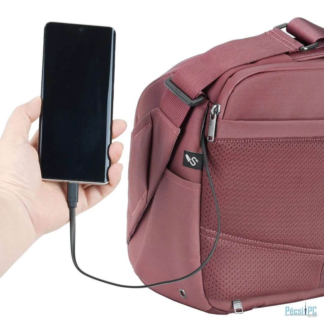 Ez a praktikusan felszerelt válltáska több tárolózsebet is tartalmaz. A bal oldalon (ahogy a táska feléd néz) egy vizespalack zseb van elrejtve. Ezenkívül a felső patent belső oldalán található zárt zsebek tökéletesek SD-kártyák és kiegészítők számára, míg a felső patent külső oldalán és a válltáska elején található zárt zsebek egyéb tárgyak számára használhatók. Van egy rejtett intelligens nyomkövető zseb is, így könnyen megtalálhatja táskáját, ha elkeveredne.