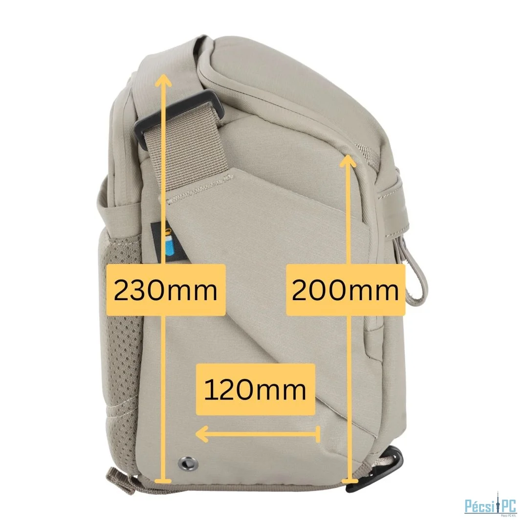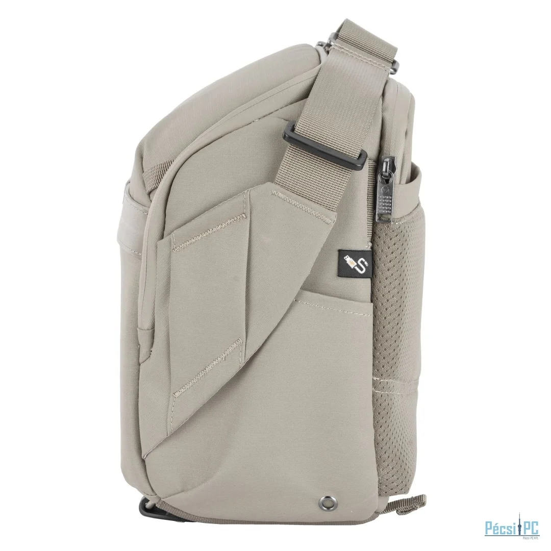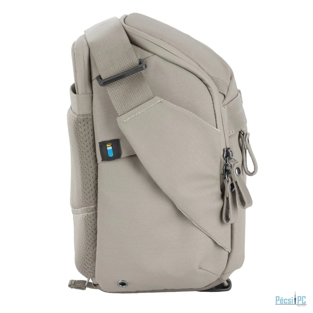 A válltáska több tárolózsebet is tartalmaz. A bal oldalon (ahogy a táska Ön felé néz) egy vizespalack zseb van elrejtve. A felső patent belső oldalán található zárt zsebek SD-kártyák és tartozékok számára, míg a felső patent külső oldalán és a válltáska elején található zárt zsebek egyéb tárgyak számára használhatók.