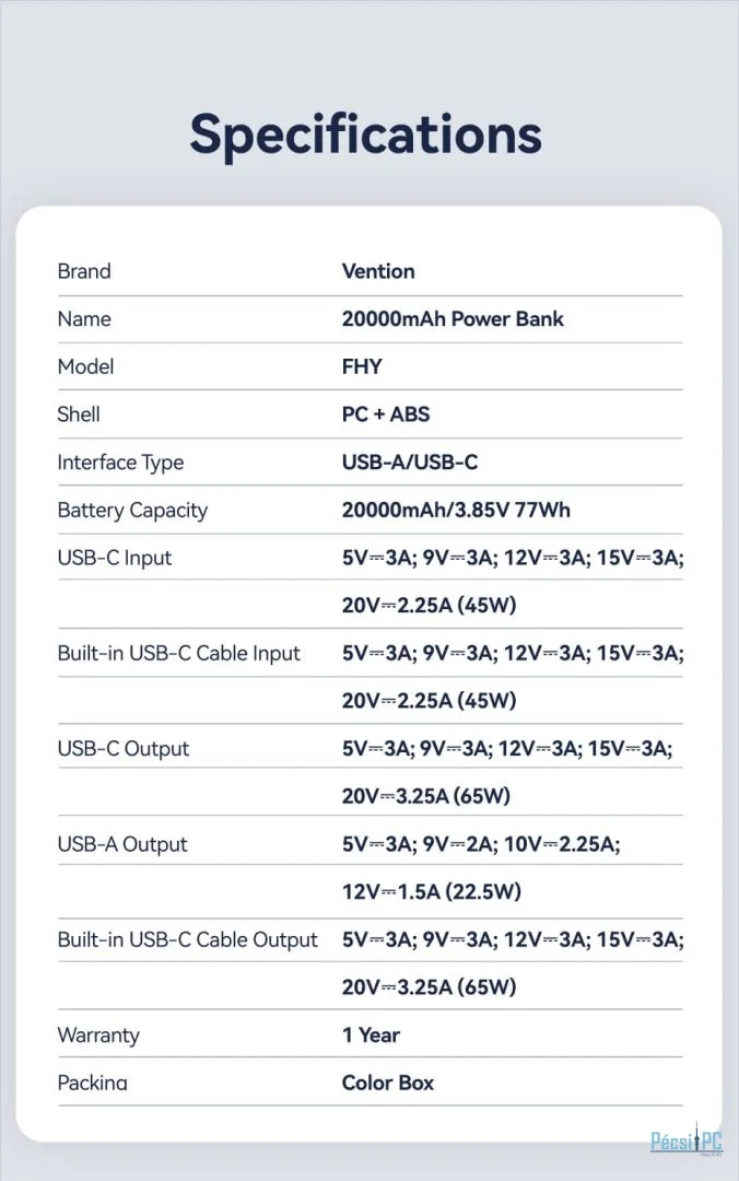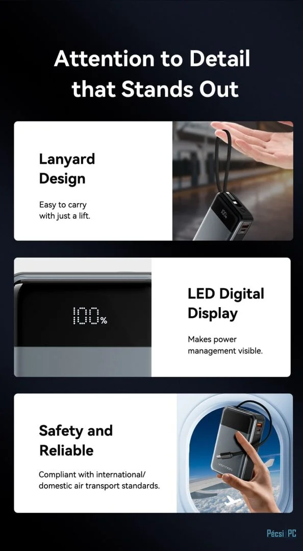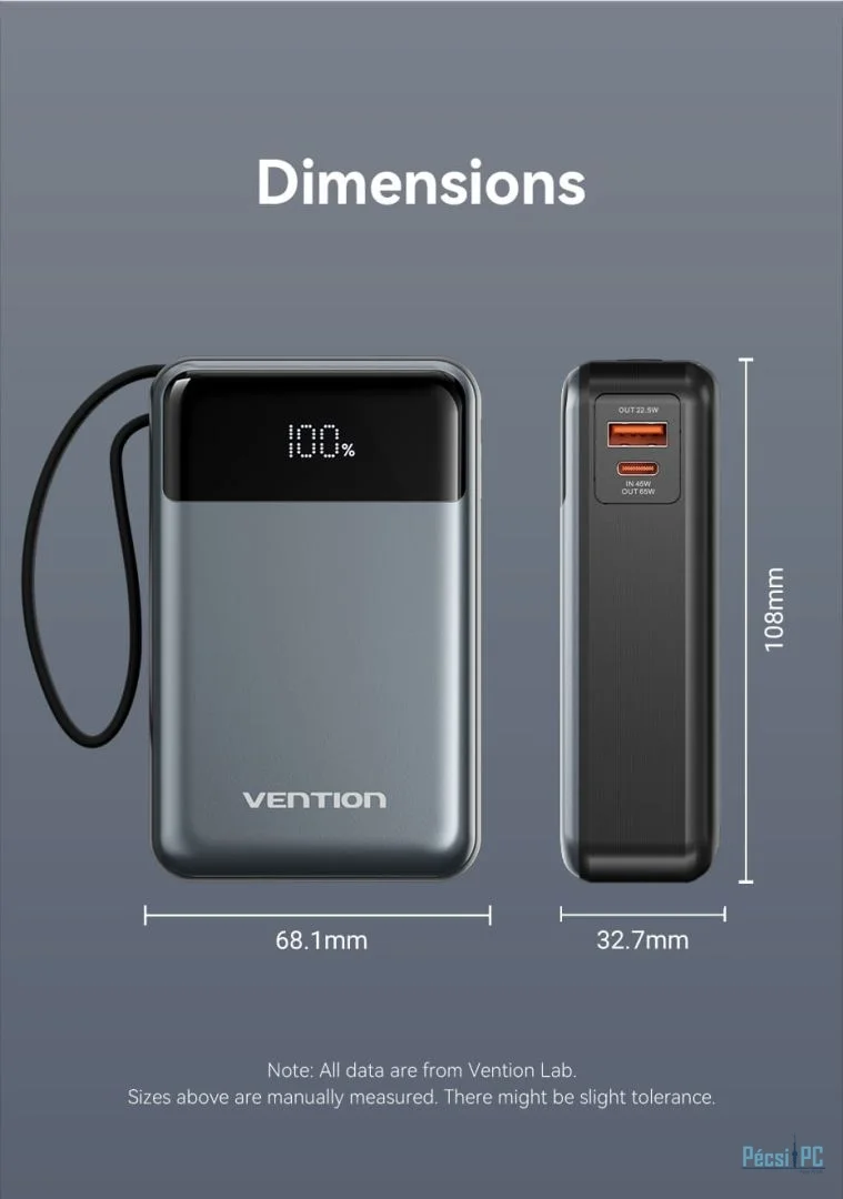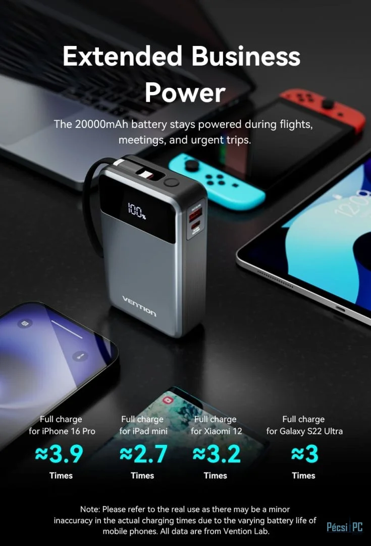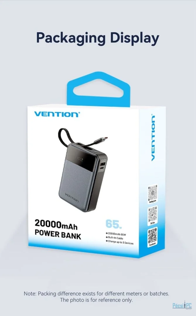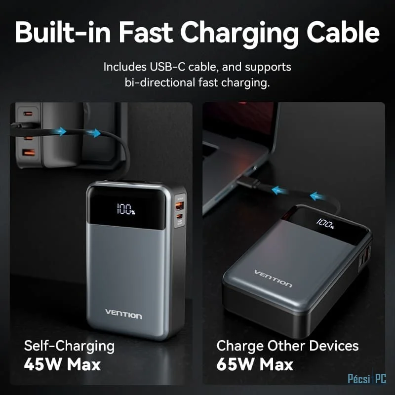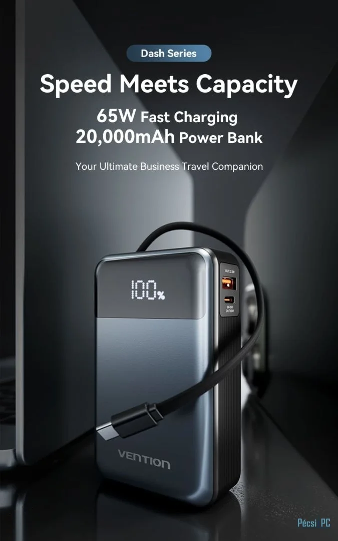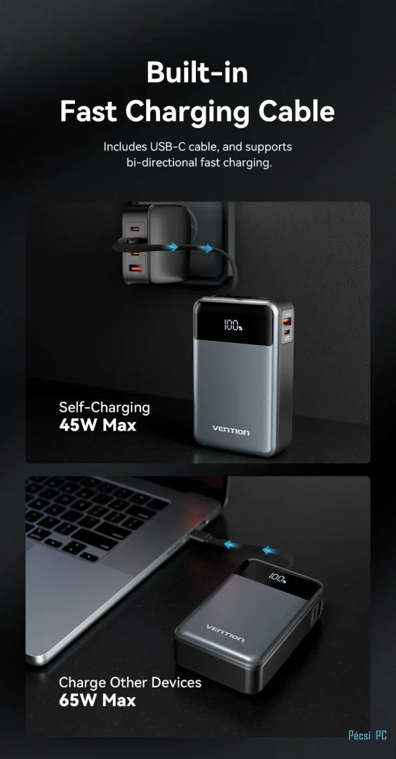 Vention FHYB0 20000mAh Power Bank integrált USB-C kábellel - maradjon bárhol áram alatt