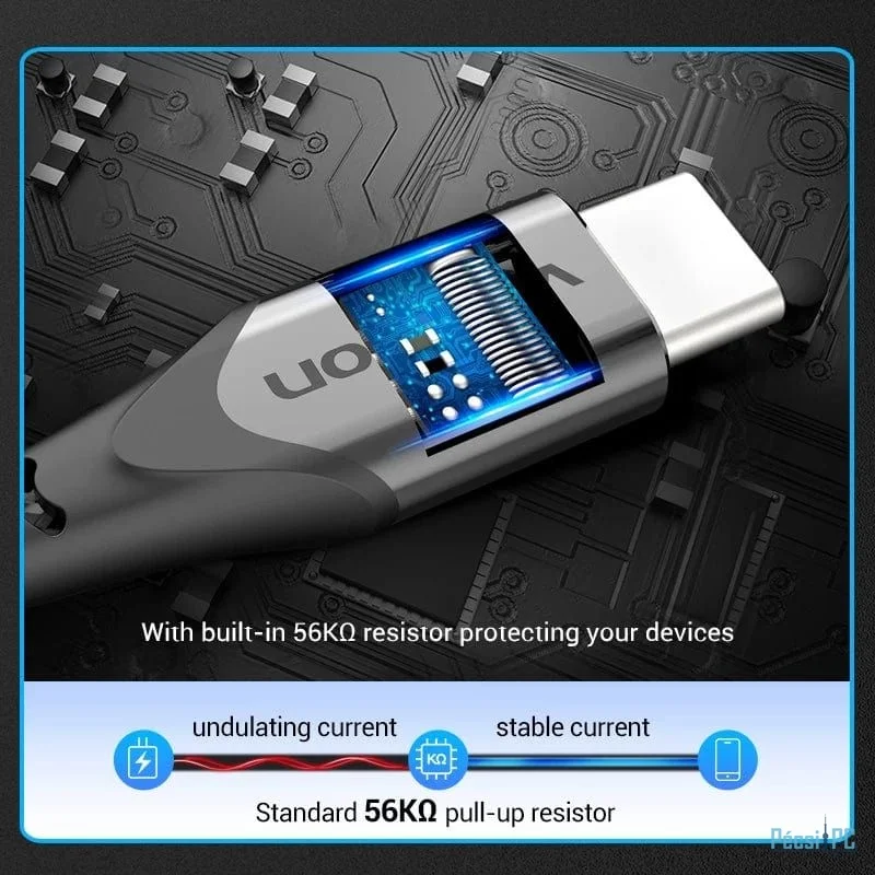 Vention Cotton Braided USB 2.0 A Male to C Male 3A Cable 2m Gray