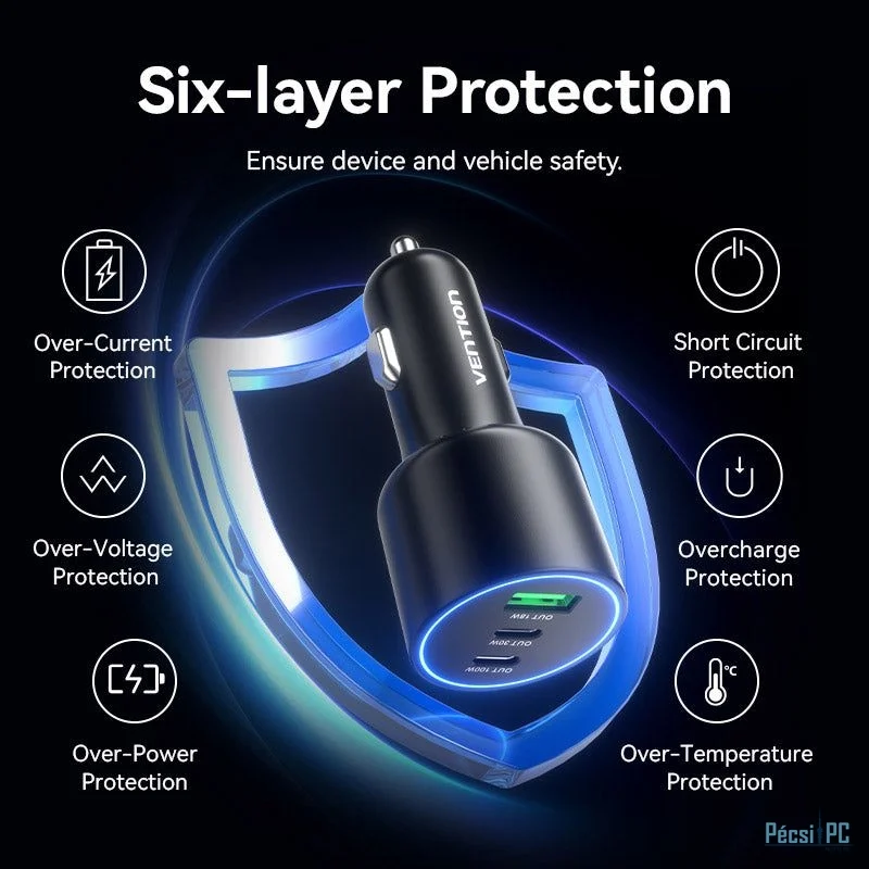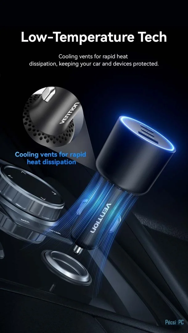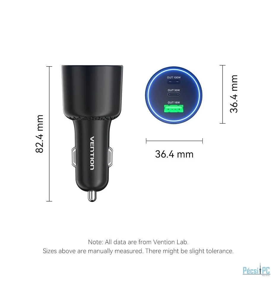 Vention Three-Port USB C+C+A (100W+30W+18W) Car Charger Black