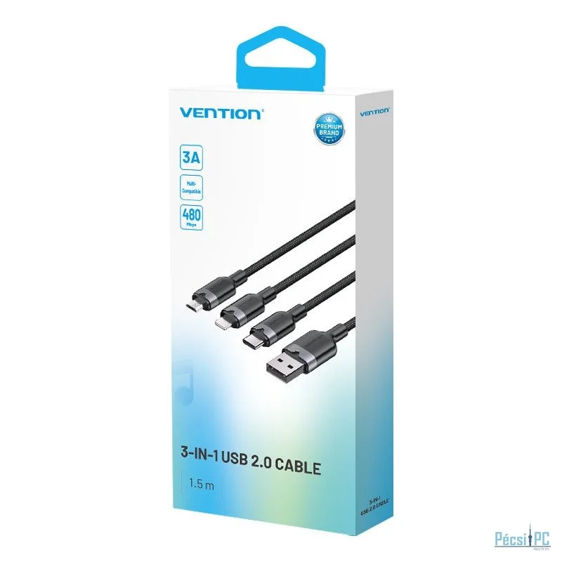 Vention USB 2.0 A to USB-C/Lightning/Micro USB-B Cable 1,5m Black