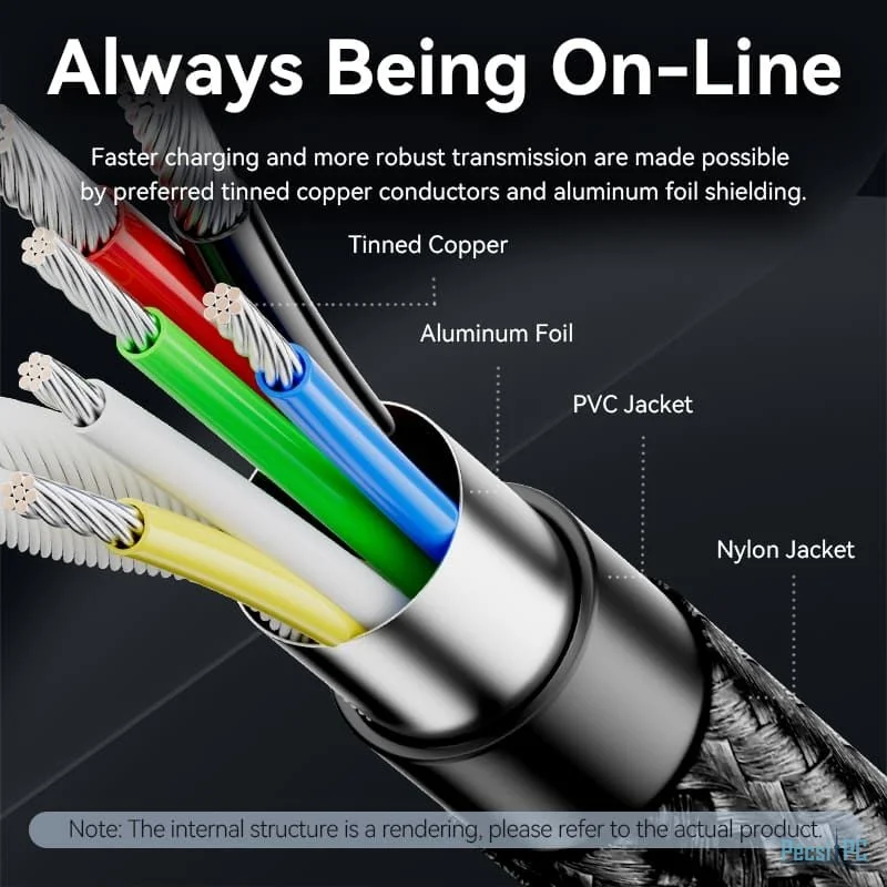 Kiváló tartósság: A kiváló minőségű nejlonból fonott köpenyből készült, robusztus alumíniumötvözetből készült héjjal párosított kábel úgy készült, hogy ellenálljon a mindennapok megpróbáltatásainak és kihívásainak. Szigorú teszteknek vetették alá, és bebizonyosodott, hogy több mint 20 000 hajlítást bír ki anélkül, hogy a kopás vagy törés jeleit mutatná, így biztosítva, hogy kiállja az idő próbáját.
