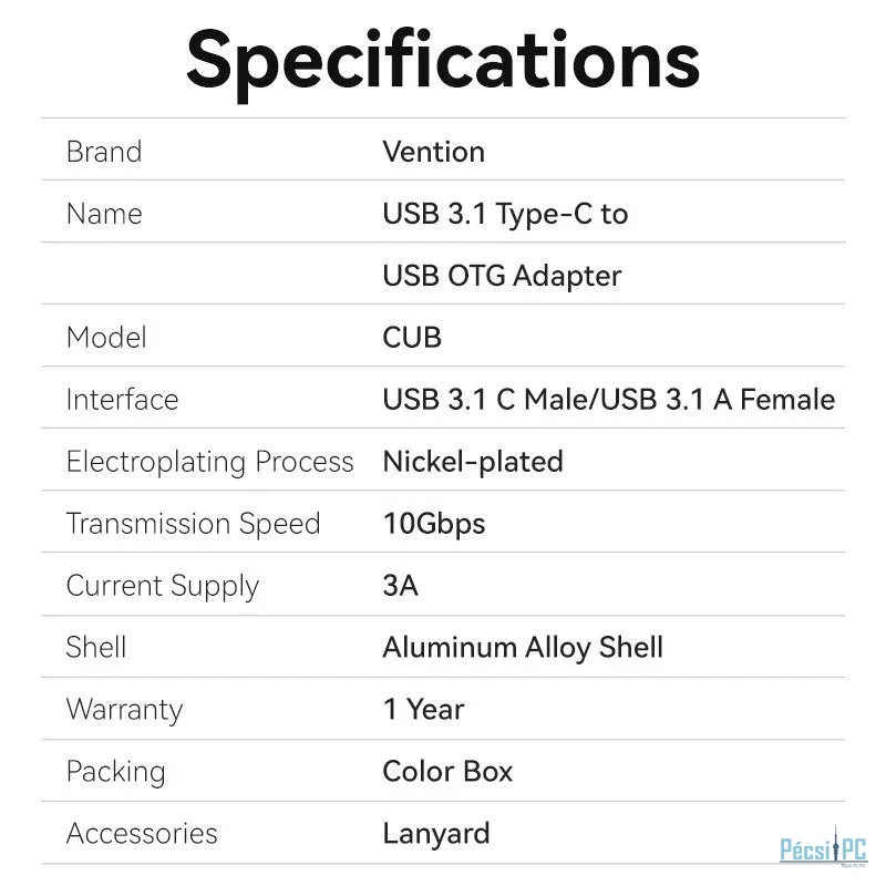 Vention USB 3.1 Type-C Male to USB Female OTG Adapter Blue