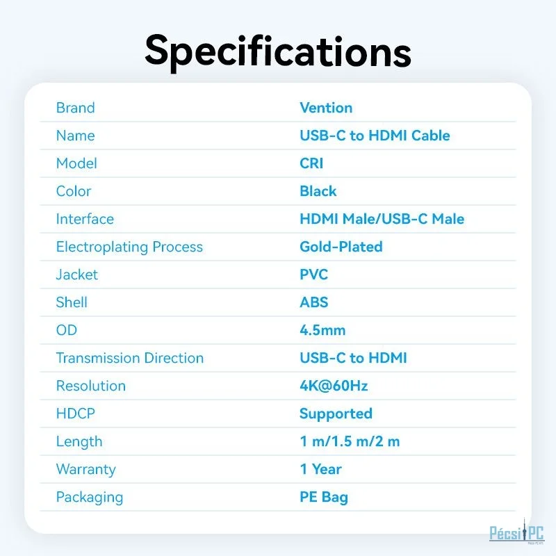 Vention USB-C to HDMI cable 2m Black
