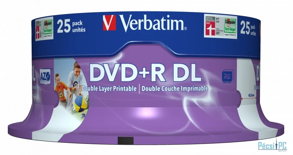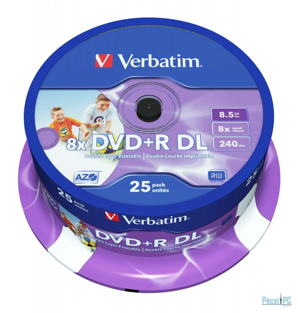 Verbatim DVD+R 8,5Gb 8x Hengeres 25db/csomag (25-ös címke)