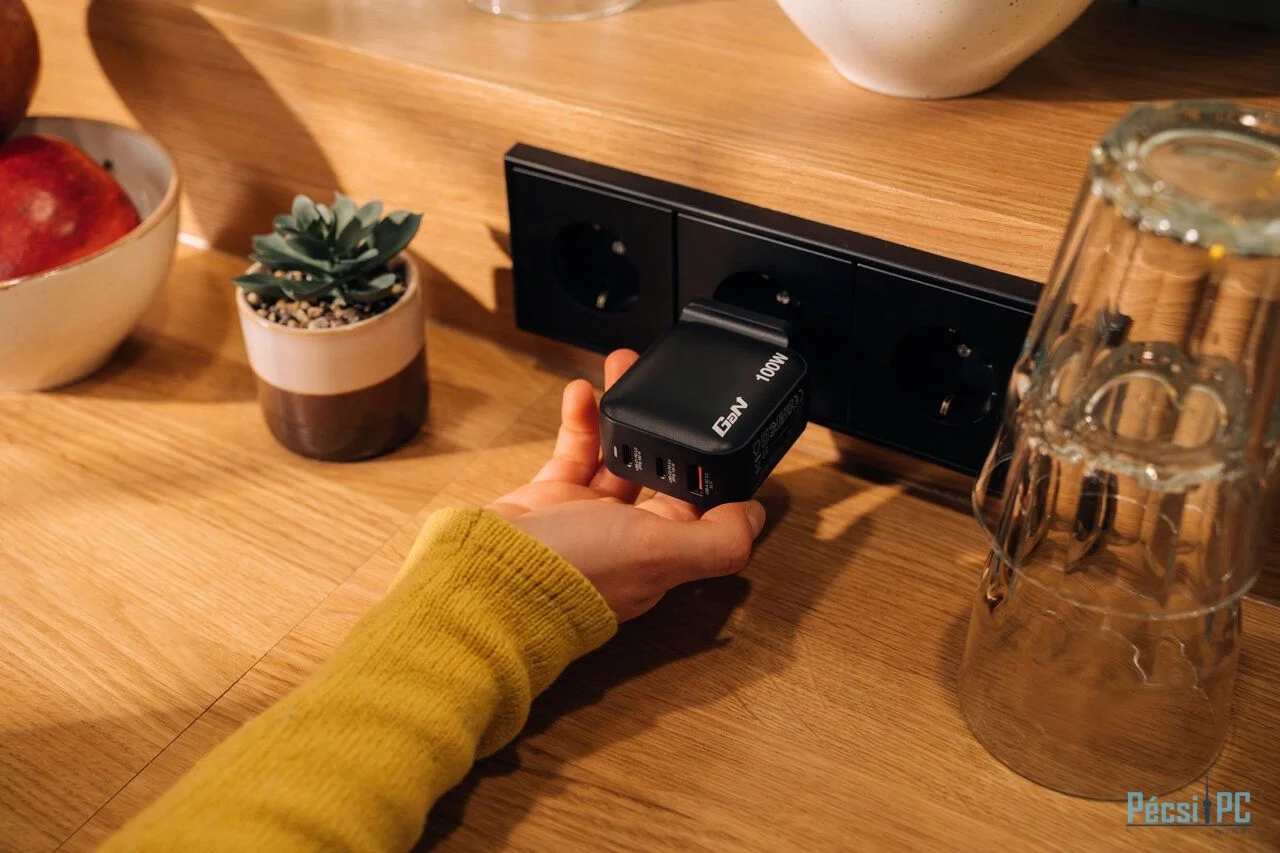 Adapter, 1xUSB-A, 2xUSB-C, 5V/9V/12V/15V/20V, 5A, 100W, QC, PD, Black