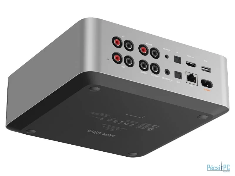 Akárcsak a WiiM AMP esetében; HDMI (ARC) és Phono (MM és MC) bemenetek, valamint subwoofer-kimenet aktív mélynyomó számára