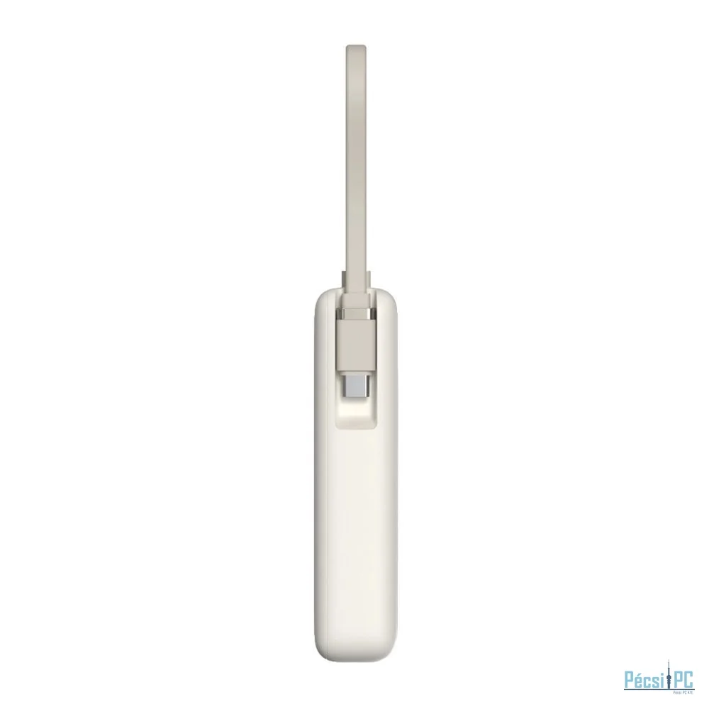 A legkényelmesebb funkciója a beépített USB-C töltőkábel, amely tartós TPU anyagból készült és praktikus zsinórként is használható a kényelmes hordozáshoz. Ezen felül egy különálló USB-C és egy USB-A port is található rajta, így egyszerre három eszköz is tölthető.