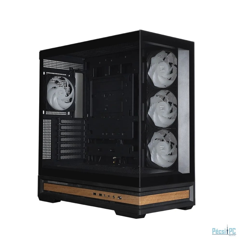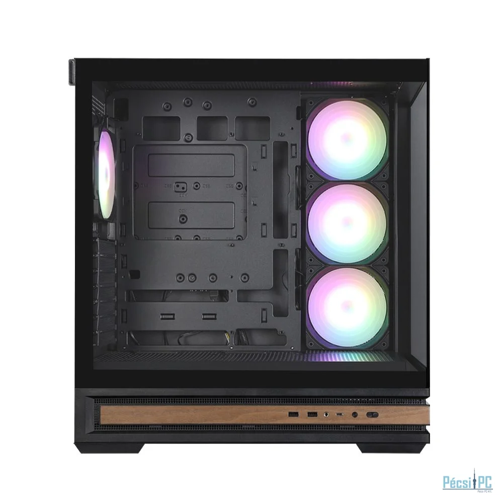 microATX, Black, 2x3,5", 2xUSB3.0, 1xUSB Type-C, Audio, Táp nélkül, 492x452x235mm, Ventilátor:4x12cm, Tempered glass window, RGB, Gamer
