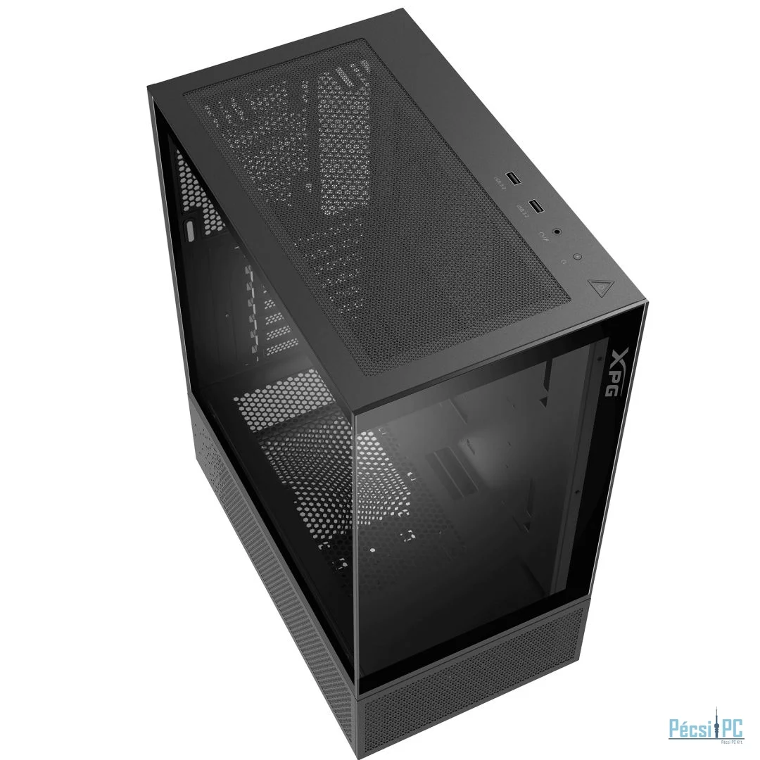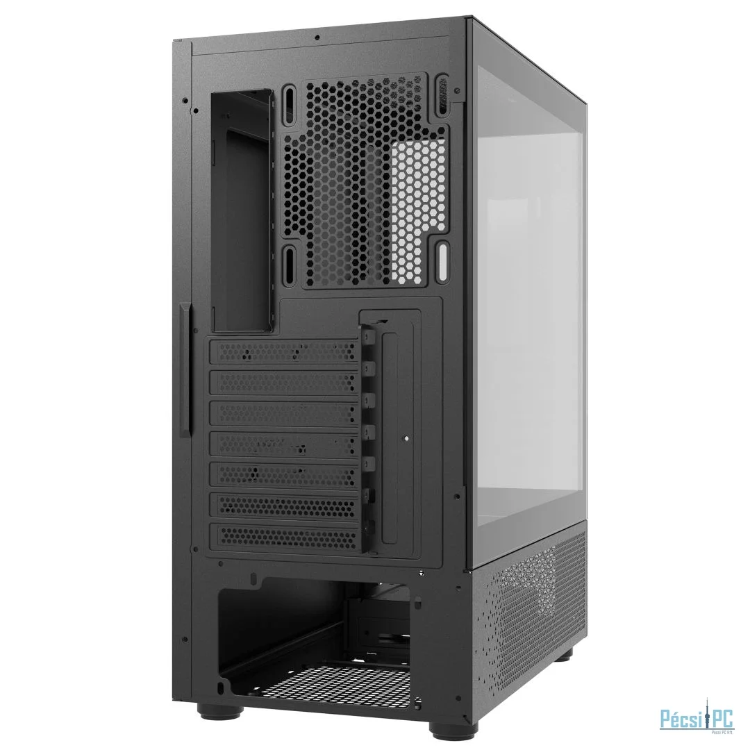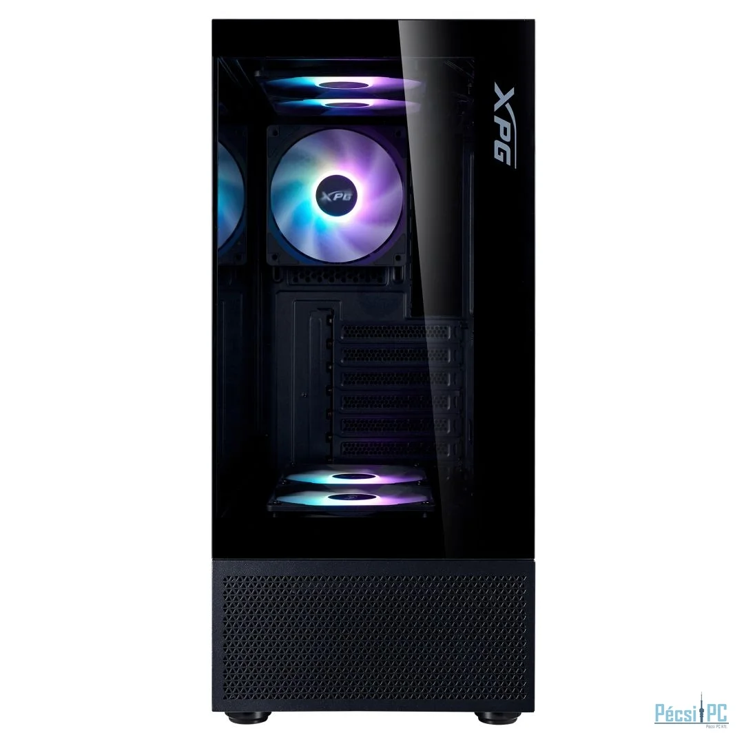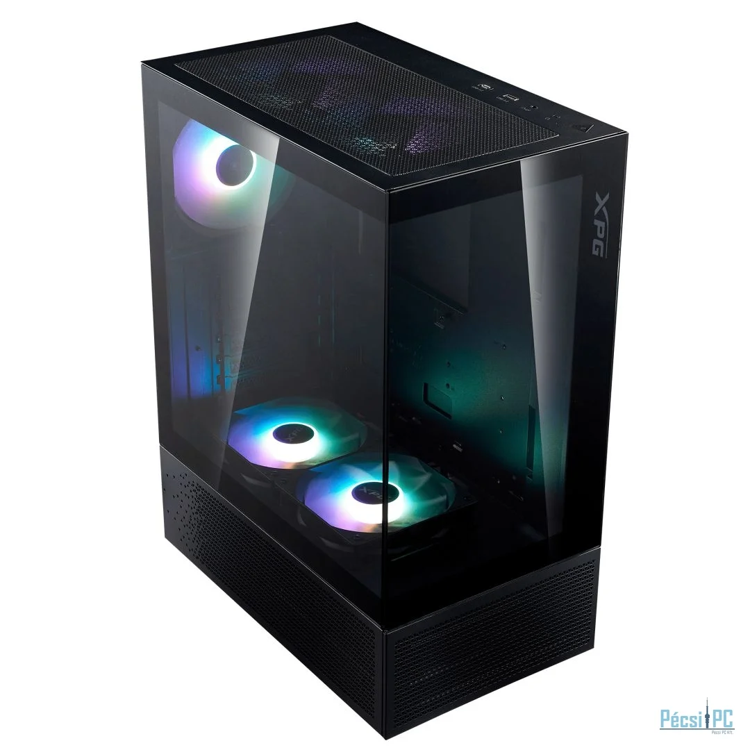 ATX, Black, 2x3,5", 1x2,5", 1xUSB3.2, 1xUSB Type-C, Audio, Táp nélkül, 460x359x210mm, Ventilátor:5x12cm, Tempered glass window, RGB, Gamer