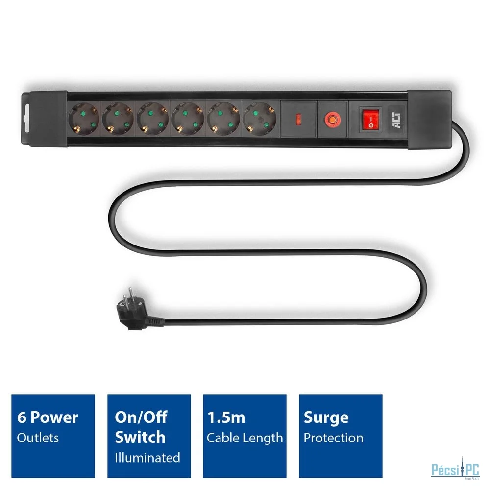 ACT AC2450 Túlfeszültségvédő Kapcsolóval 6DIN 1,5m Black