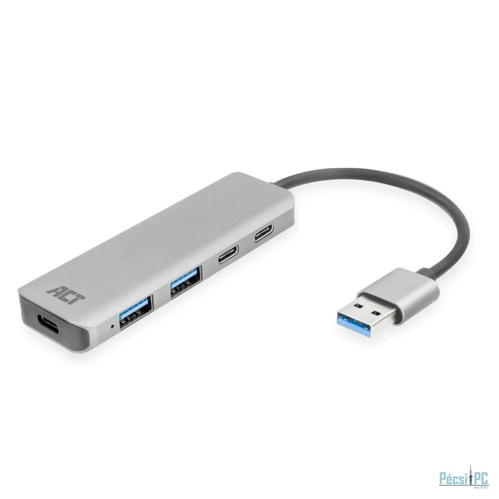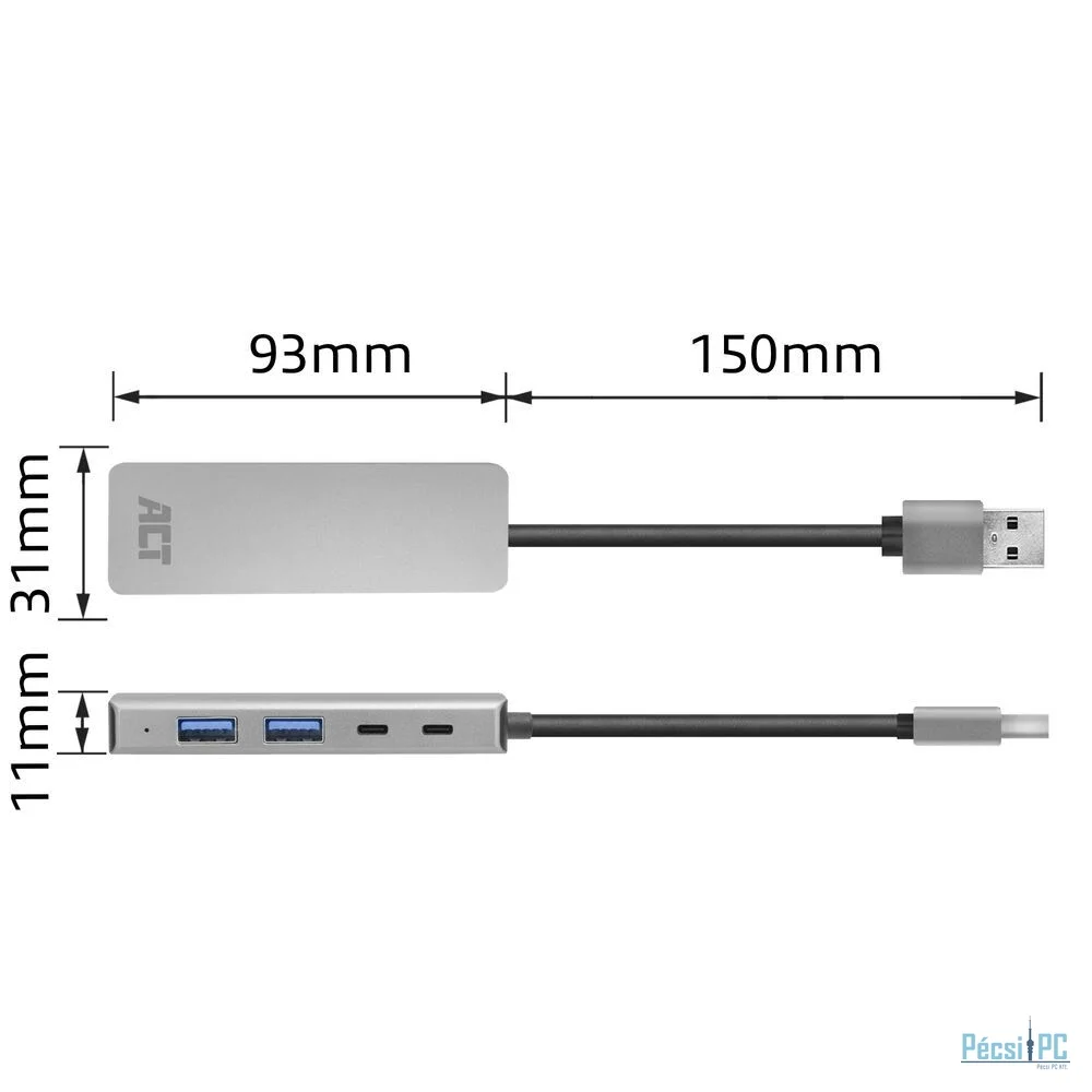 Az ACT AC6125 USB hub könnyű, tömör alumínium kialakítású, amely könnyen elfér a laptop táskájában. A hub négy extra USB-porttal bővíti laptopját vagy számítógépét USB-A és USB-C perifériák csatlakoztatásához.