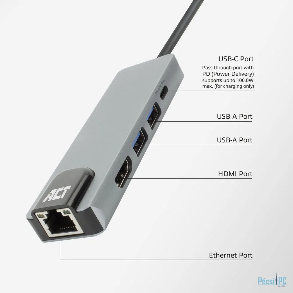 Az AC7091 egy komplett 5 az 1-ben hordozható dokkolóállomás, más néven multiport adapter. A HDMI-porton keresztül külső kijelzőt adhat hozzá. Maximum 4K@60Hz felbontású monitorhoz alkalmas.