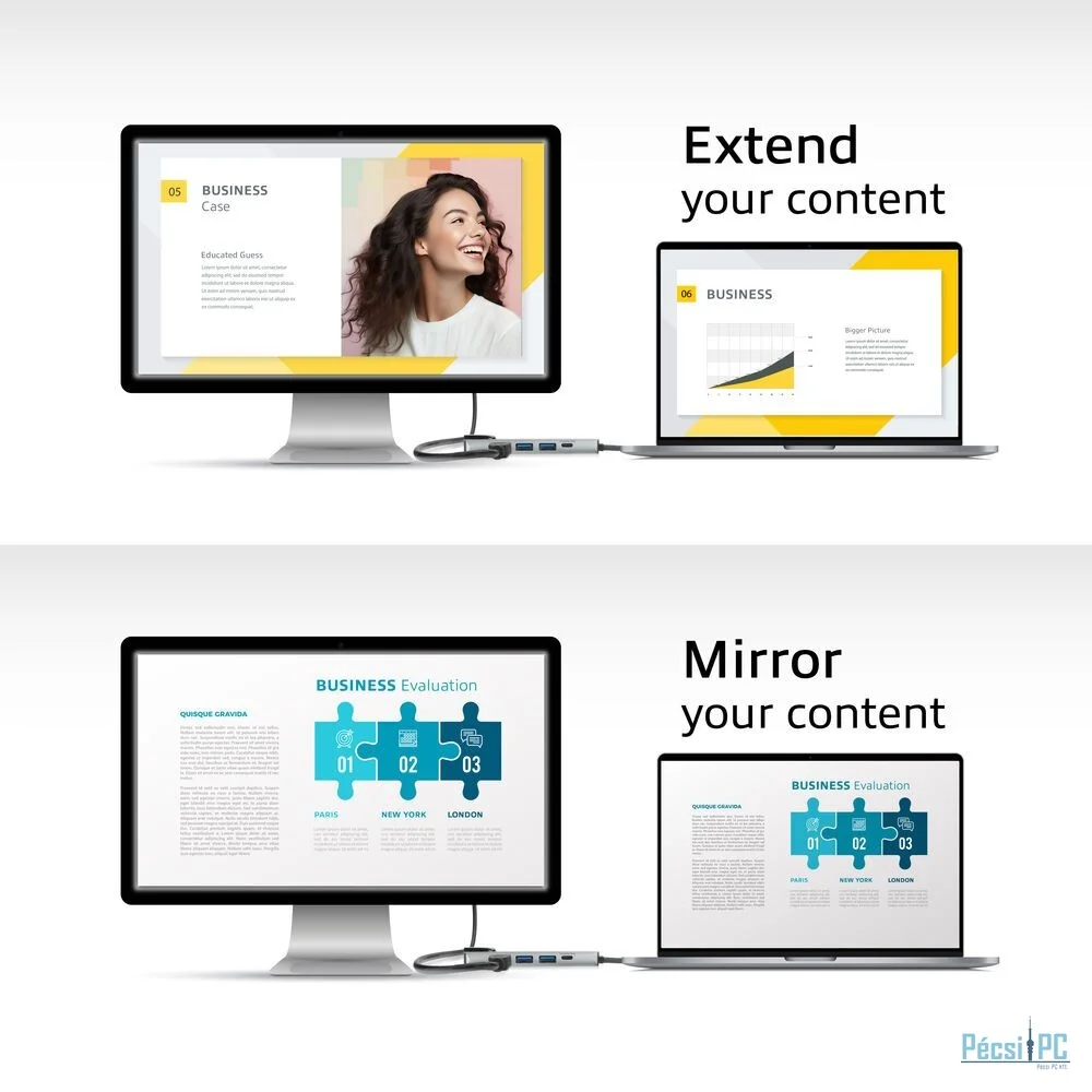 A különböző helyszíneken tartott üzleti prezentációkhoz az AC7091 multiport dokkoló kiváló megoldást kínál. A laptop könnyen csatlakoztatható bármilyen HDMI-kompatibilis monitorhoz vagy projektorhoz, így a prezentációk éles 4K felbontásban jeleníthetők meg. Nem kell több adaptert vagy töltőt magával vinni, mivel a dokkoló minden szükséges csatlakozást biztosít, és a laptopot az USB-C Power Delivery átjárón keresztül folyamatosan feltölti. A masszív alumínium ház védelmet biztosít utazás közben, és professzionális megjelenést kölcsönöz.