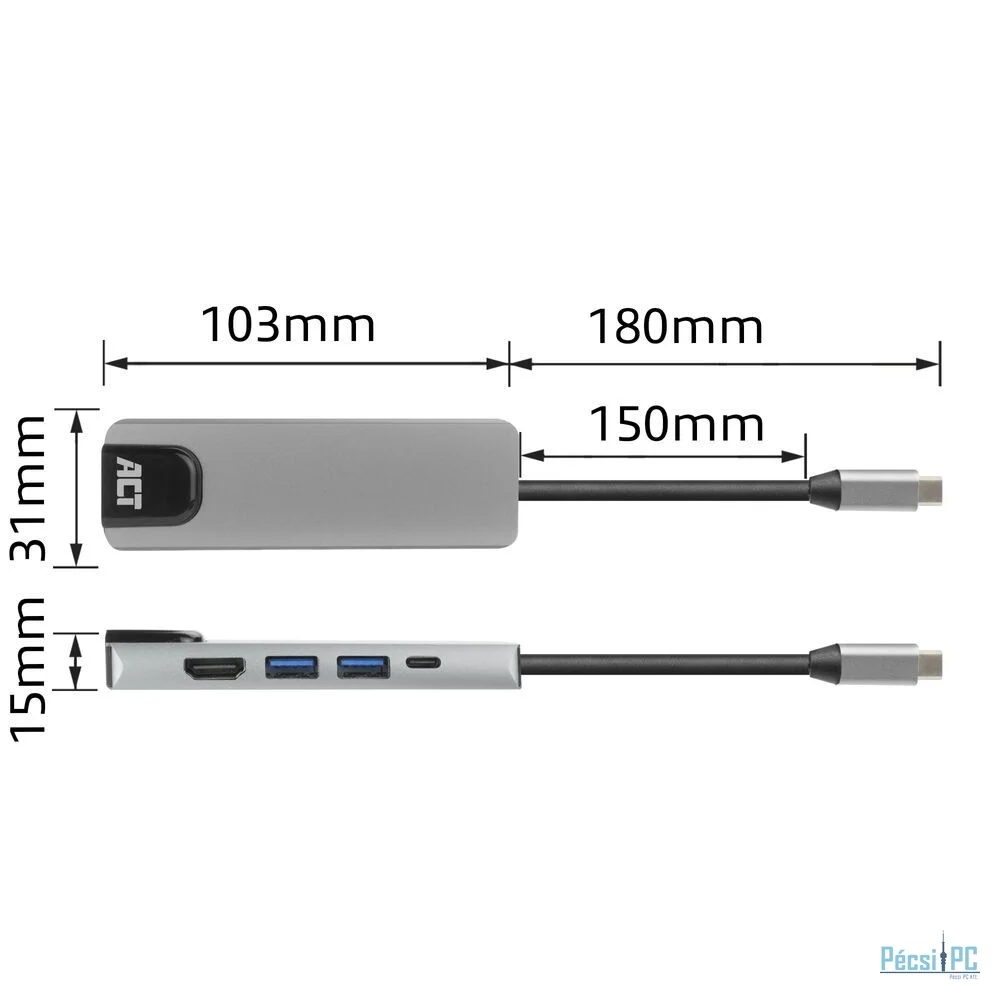 ACT AC7091 USB-C 4K docking station for 1 HDMI Adapter Silver