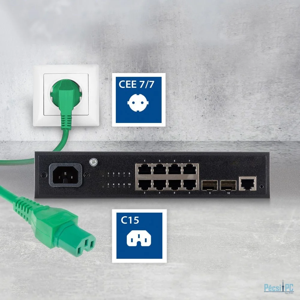 Tápkábel, Schuko, IEC, Male/Female, 1m, Green