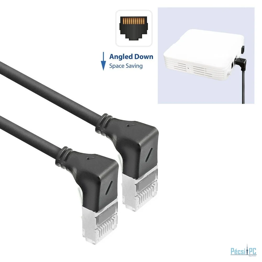 Csatlakozók: RJ45 90° lefelé hajlított - RJ45 egyenes
