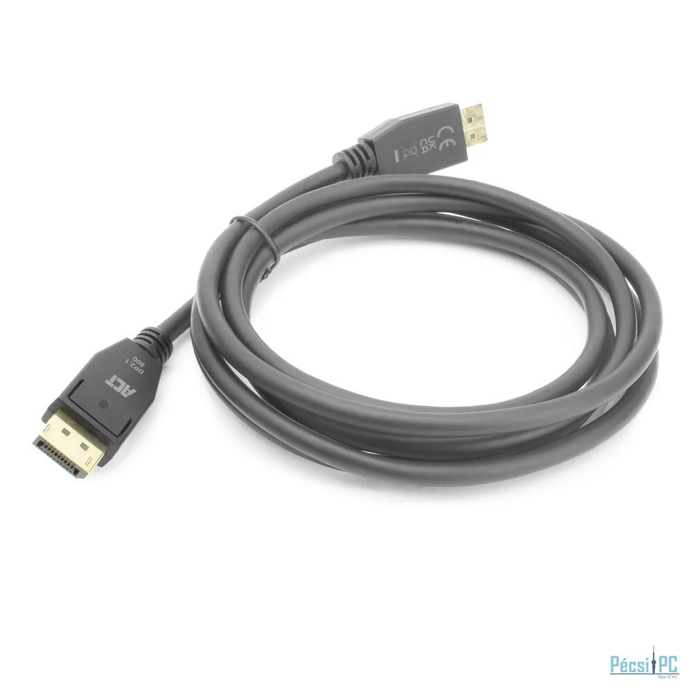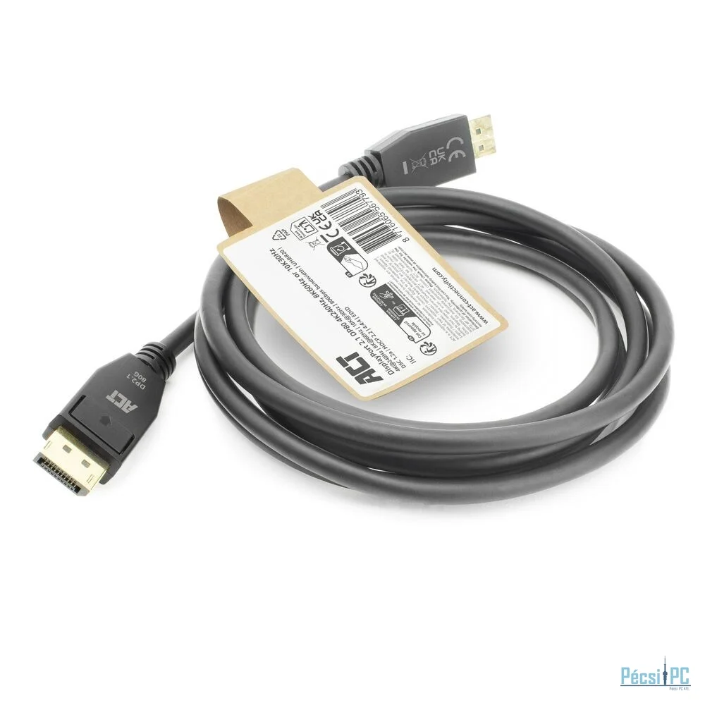 Az ACT 8K DisplayPort 2.1 DP80 UHBR20 kábel igényes alkalmazásokhoz alkalmas, és kristálytiszta videó- és hangátvitelt biztosít. A DisplayPort kábel támogatja a 10K@30Hz, 8K@60Hz és 4K@240Hz maximális felbontást, valamint a 80 Gbps maximális sávszélességet. A DisplayPort támogatja a Display Stream Compression 1.2a (DSC) és a HDCP 2.2 szabványt.
