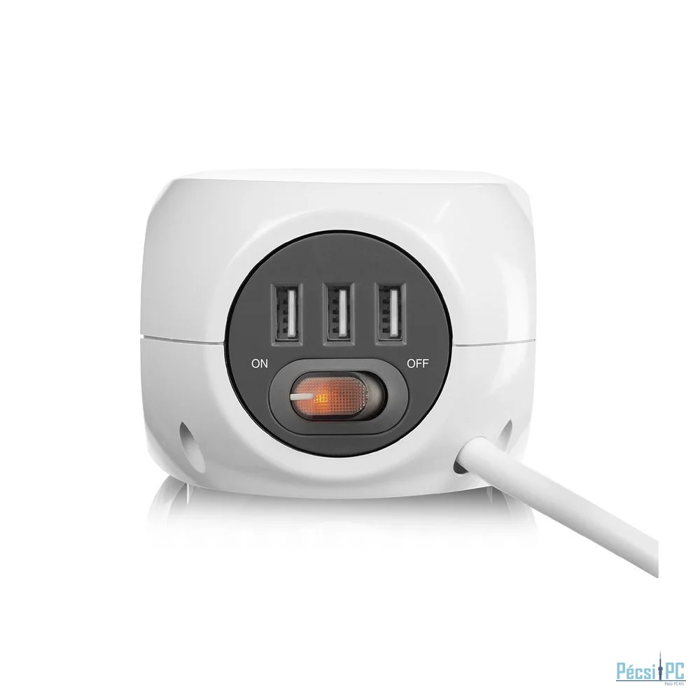 Elosztó, 3xDIN, 1,5m, Kapcsoló, USB, White