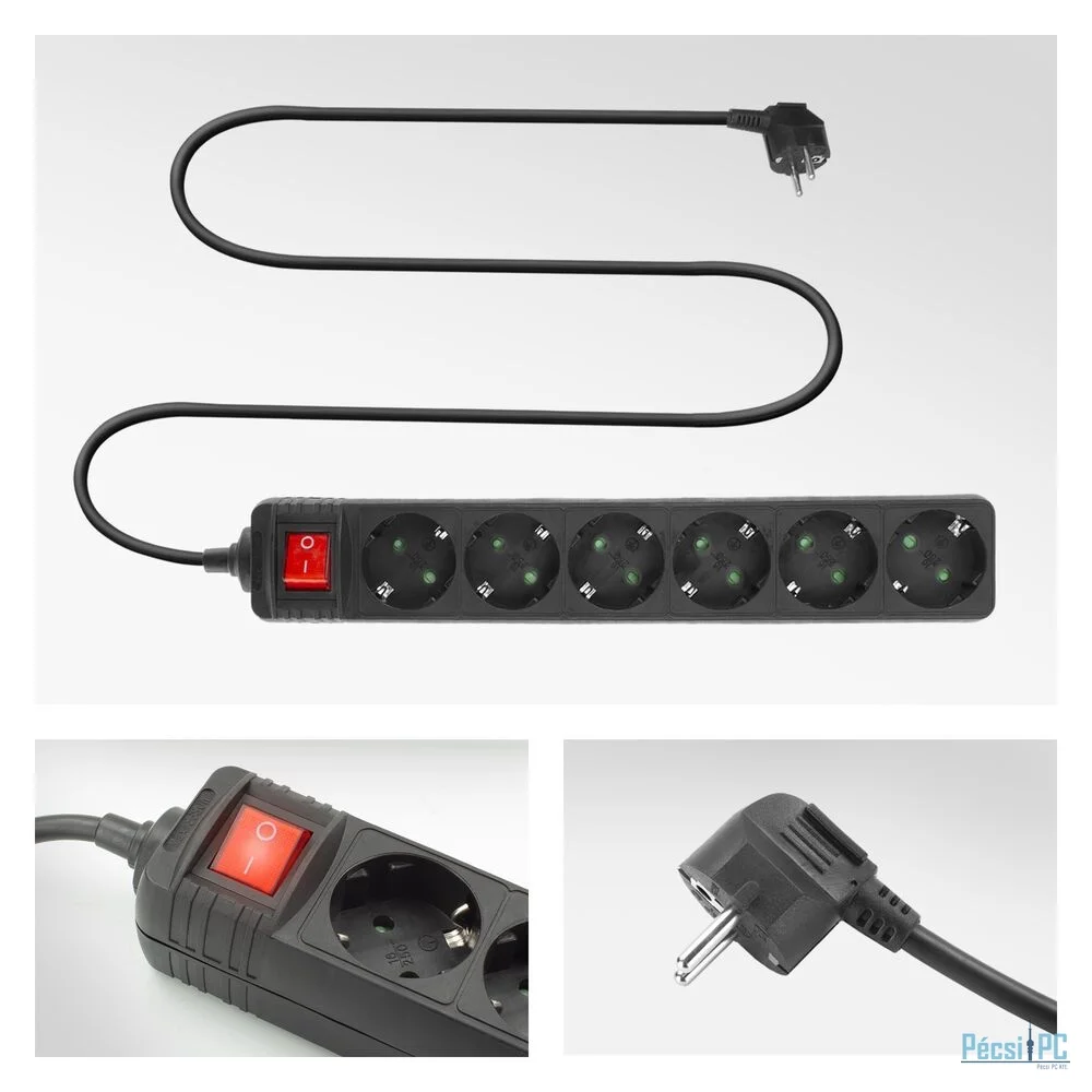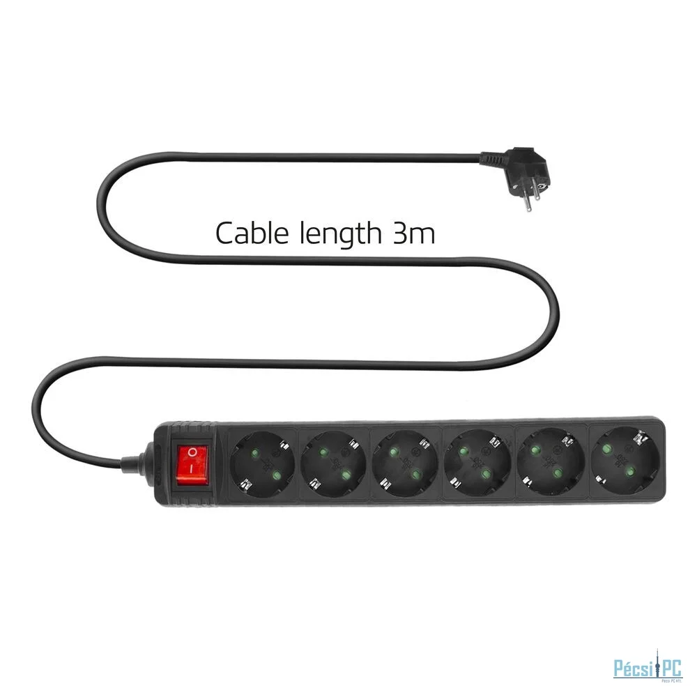 Elosztó, 6xDIN, 3m, Kapcsoló, Black