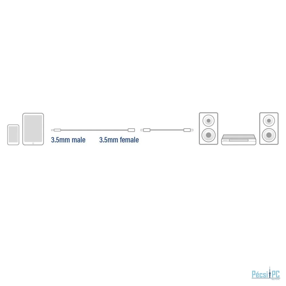 Audio kábel, 3,5mm jack, 3,5mm jack, Male/Female, 5m, Black