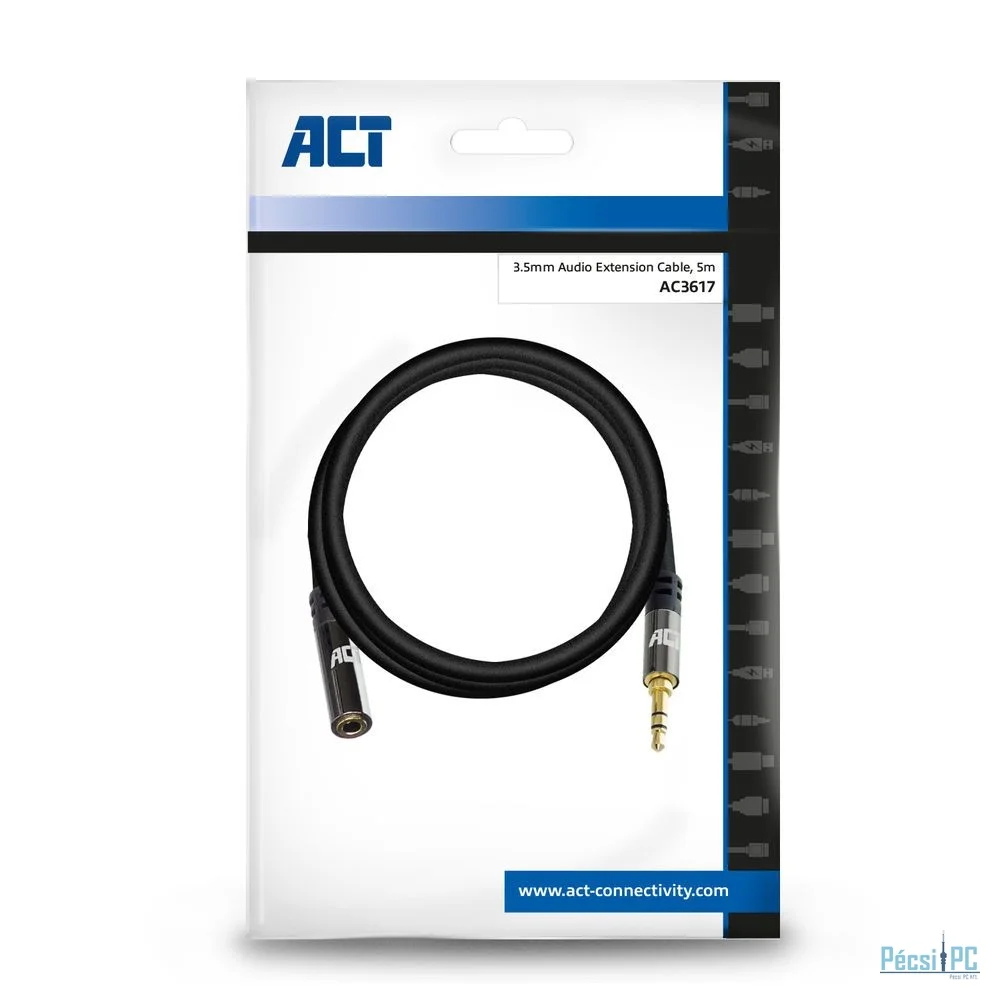 ACT High Quality audio extension cable 3.5 mm stereo jack male to female 5m Black