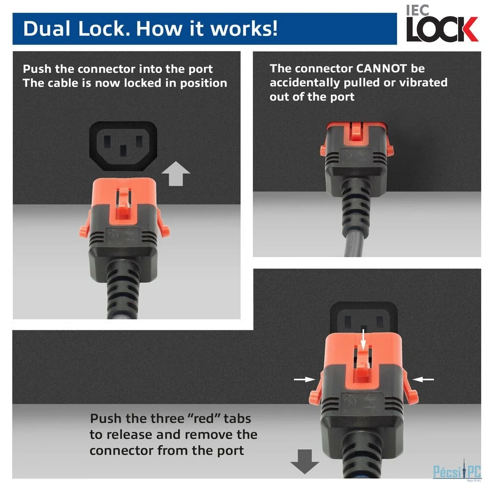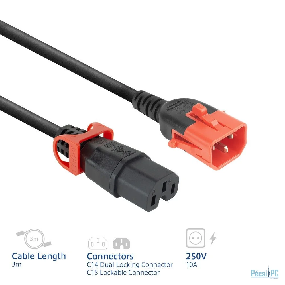 ACT PL0043 Powercord C14 IEC Lock+ Dual Locking - C15 IEC Lock+ 3m Black