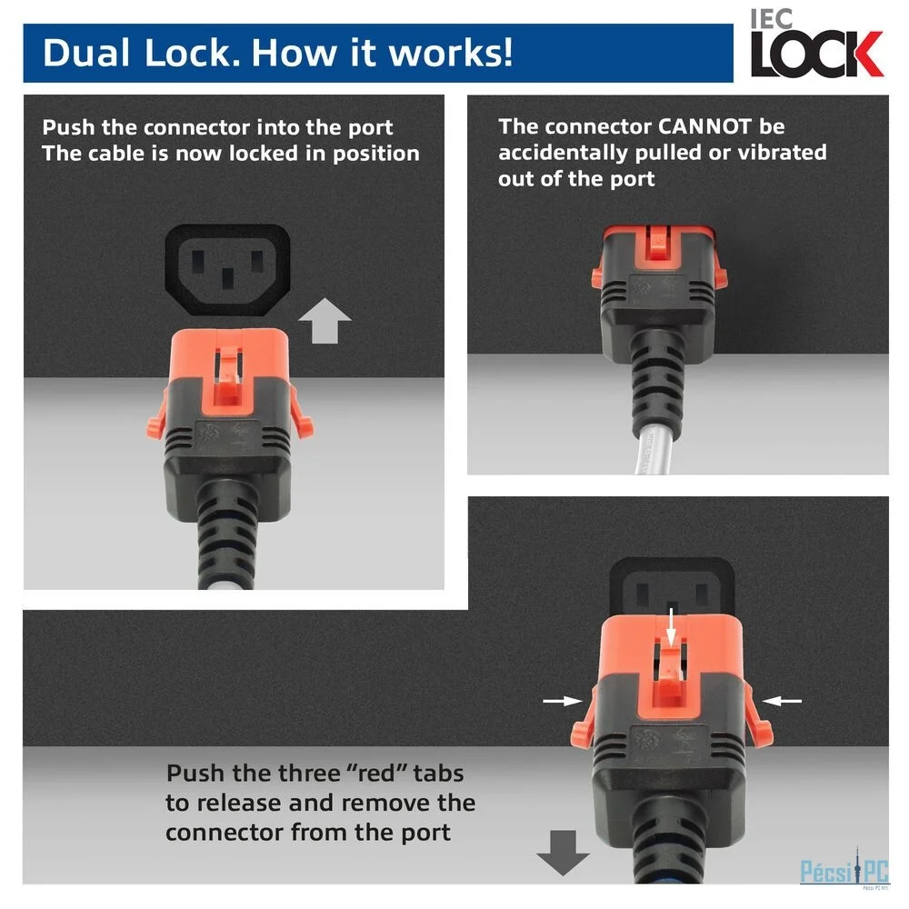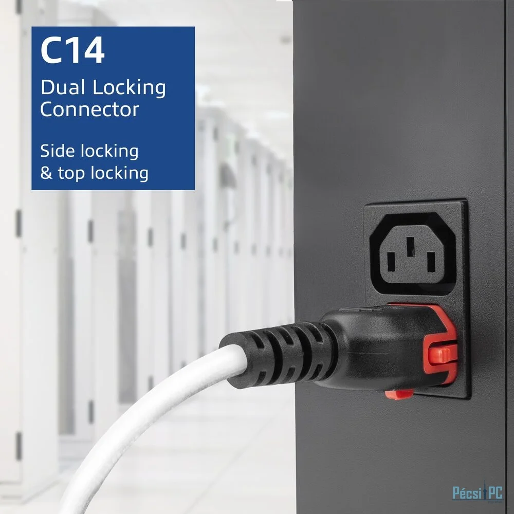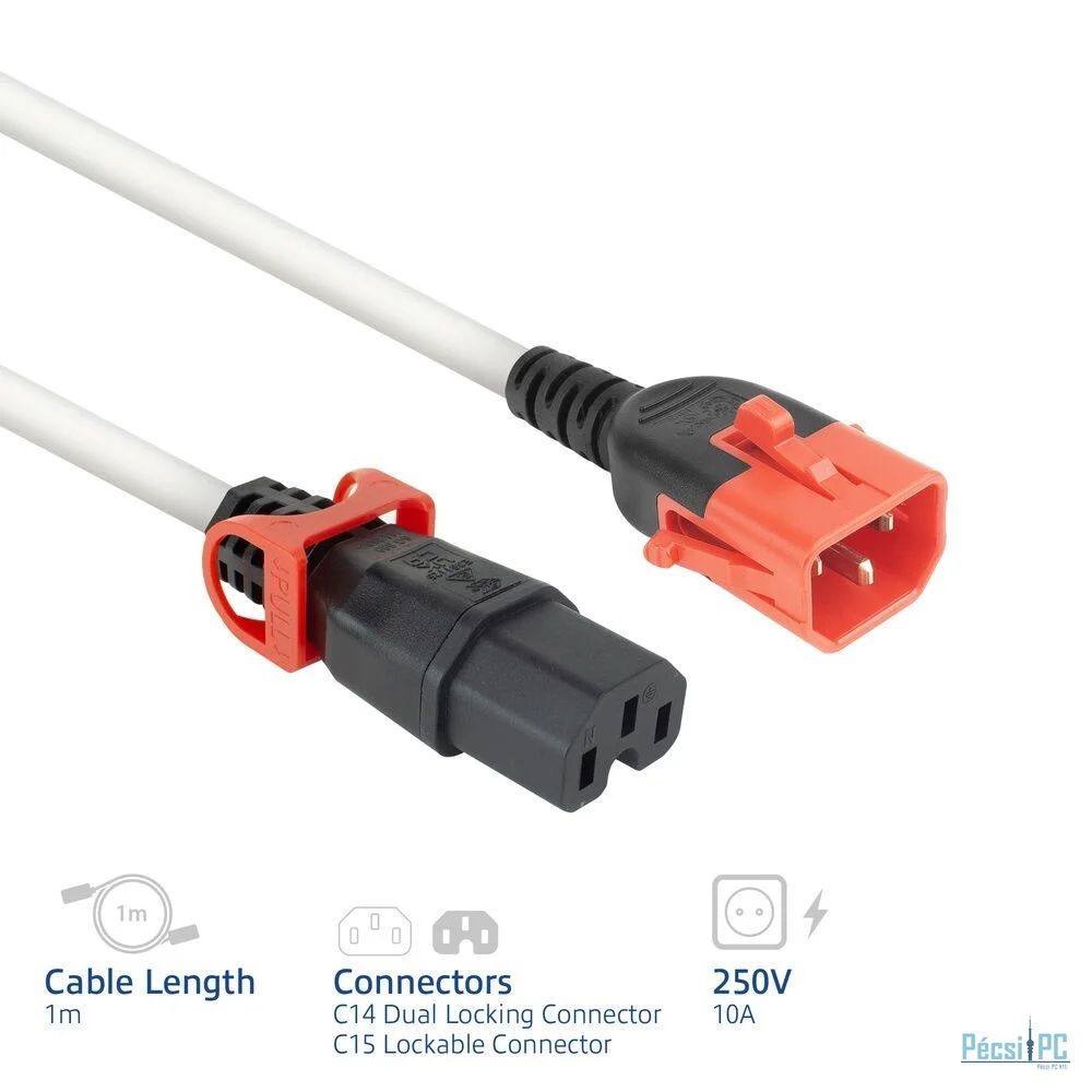 ACT PL0051 Powercord C14 IEC Lock+ Dual Locking - C15 IEC Lock+ 1m White