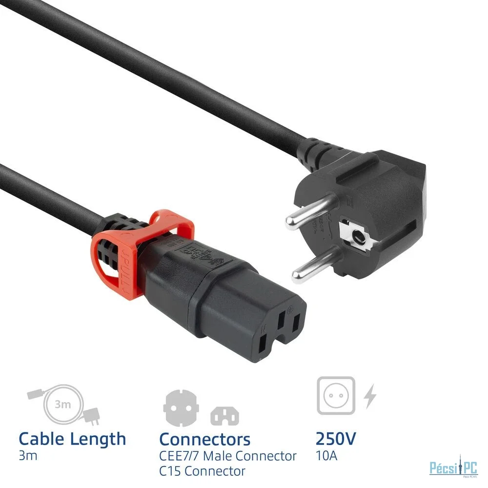 ACT PL0093 Powercord Schuko CEE 7/7 male (angled) - C15 IEC Lock+ 3m Black
