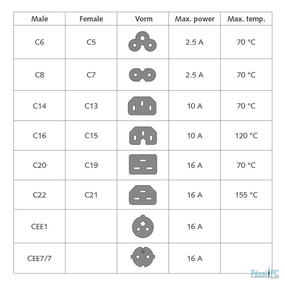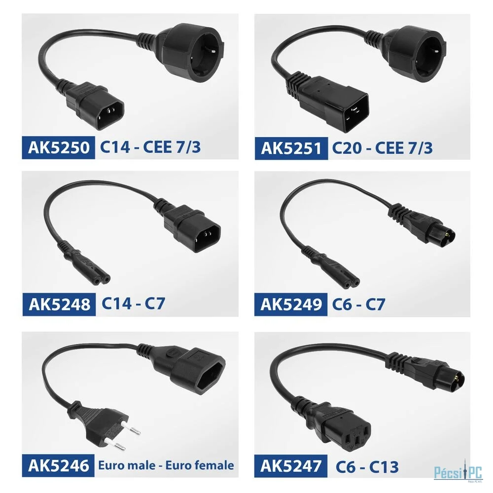 Tápkábel, IEC, F-plug, Male/Female, 0,2m, Black