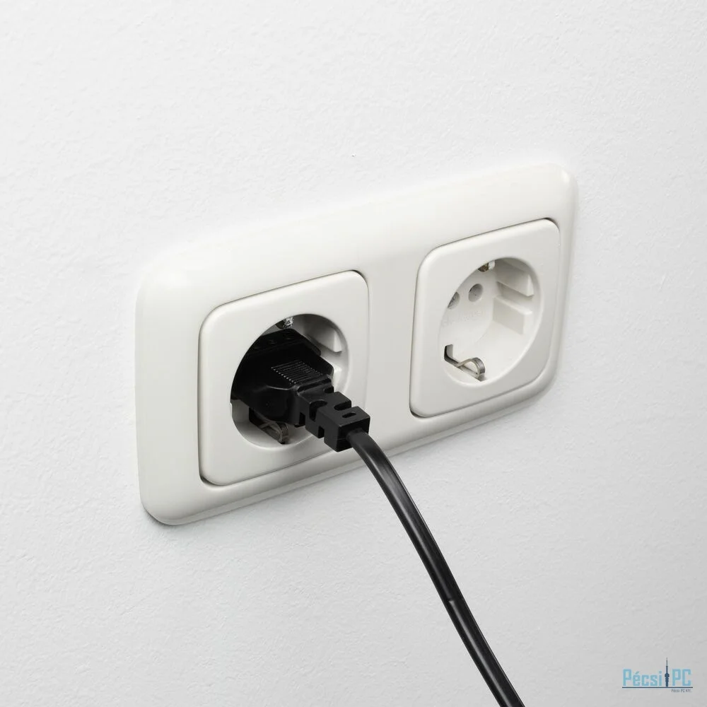 Tápkábel, Europlug, IEC, Male/Female, 1m, Black, 90 fokos