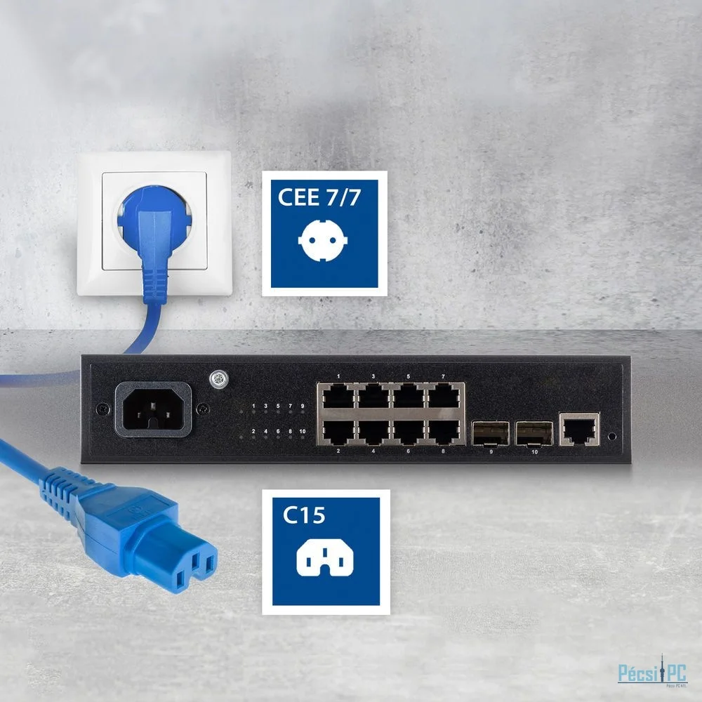 Tápkábel, Schuko, IEC, Male/Female, 1,5m, Blue