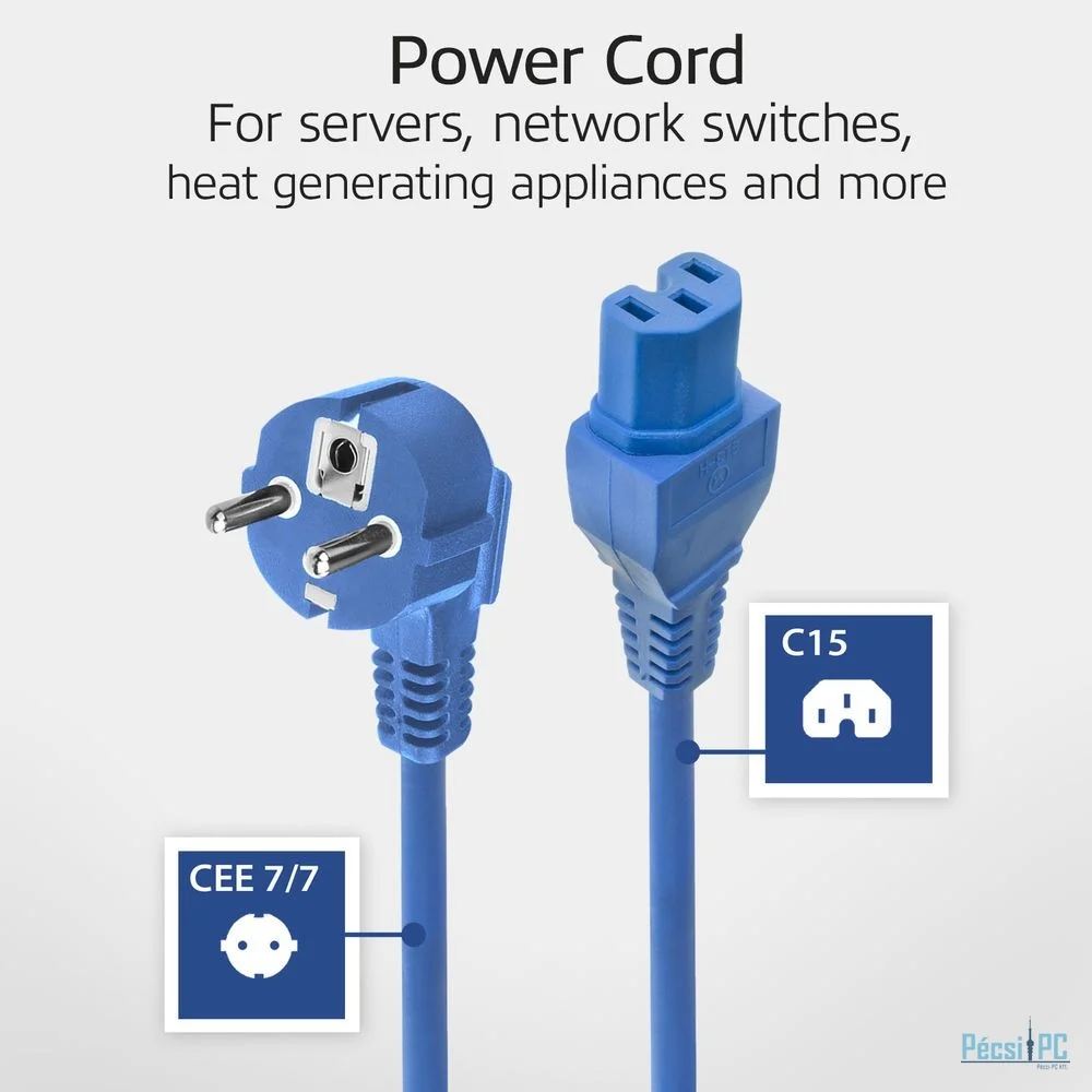 ACT Powercord mains connector Schuko CEE 7/7 male (angled) - C15 IEC 60320 1m Blue