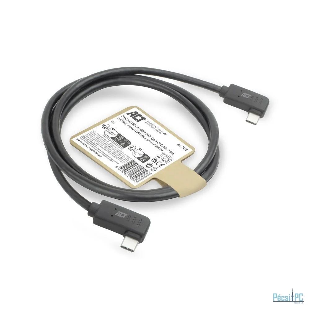 Az USB 3.0 Type-C® kábel sokoldalú megoldás USB-C eszközök csatlakoztatásához, kényelmesebb használatot biztosító szögletes csatlakozóval. A maximális adatátviteli sebesség 10 Gbps, így a kábel ideális gyors és megbízható adatátvitelre. Az USB-C kábel mindkét végén 90°-os balra/jobbra szögletes csatlakozóval rendelkezik, így rugalmasan használható különböző csatlakozási helyzetekben. A kábel támogatja a 60 W-os tápellátást és a DisplayPort Alternate módot, maximális felbontása 4K@60Hz.