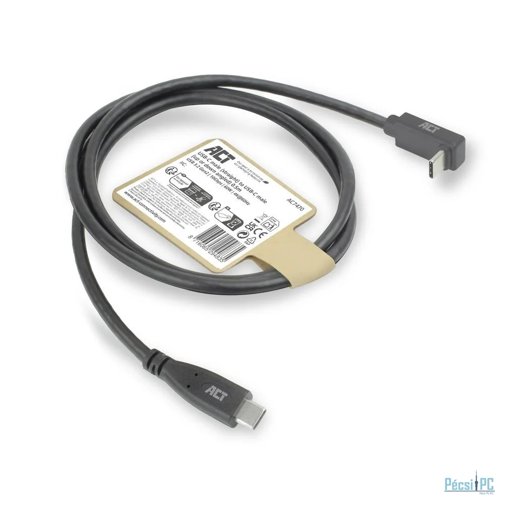 Az USB 3.0 Type-C® kábel sokoldalú megoldás USB-C eszközök csatlakoztatásához, kényelmesebb használatot biztosító szögletes csatlakozóval. A maximális adatátviteli sebesség 10 Gbps, így a kábel ideális gyors és megbízható adatátvitelre. Az USB-C kábel egy egyenes és egy 90°-os balra/jobbra szögletes csatlakozóval rendelkezik, így rugalmasan használható különböző csatlakozási helyzetekben. A kábel támogatja a 60 W-os tápellátást és a DisplayPort Alternate módot, maximális felbontása 4K@60Hz.