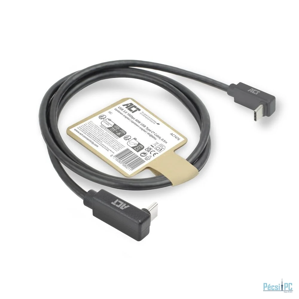 Az USB 3.0 Type-C® kábel sokoldalú megoldás USB-C eszközök csatlakoztatásához, szögletes csatlakozóval a nagyobb kényelem érdekében. A maximális adatátviteli sebesség 10 Gbps, így ez a kábel ideális olyan alkalmazásokhoz, amelyek gyors és megbízható adatátvitelt igényelnek. Az USB-C kábel mindkét végén 90°-os felfelé/lefelé szögletes csatlakozóval rendelkezik, így rugalmasan használható különböző csatlakozási helyzetekben. A kábel támogatja a 60 W-os tápellátást és a DisplayPort Alternate módot, maximális felbontása 4K@60Hz.