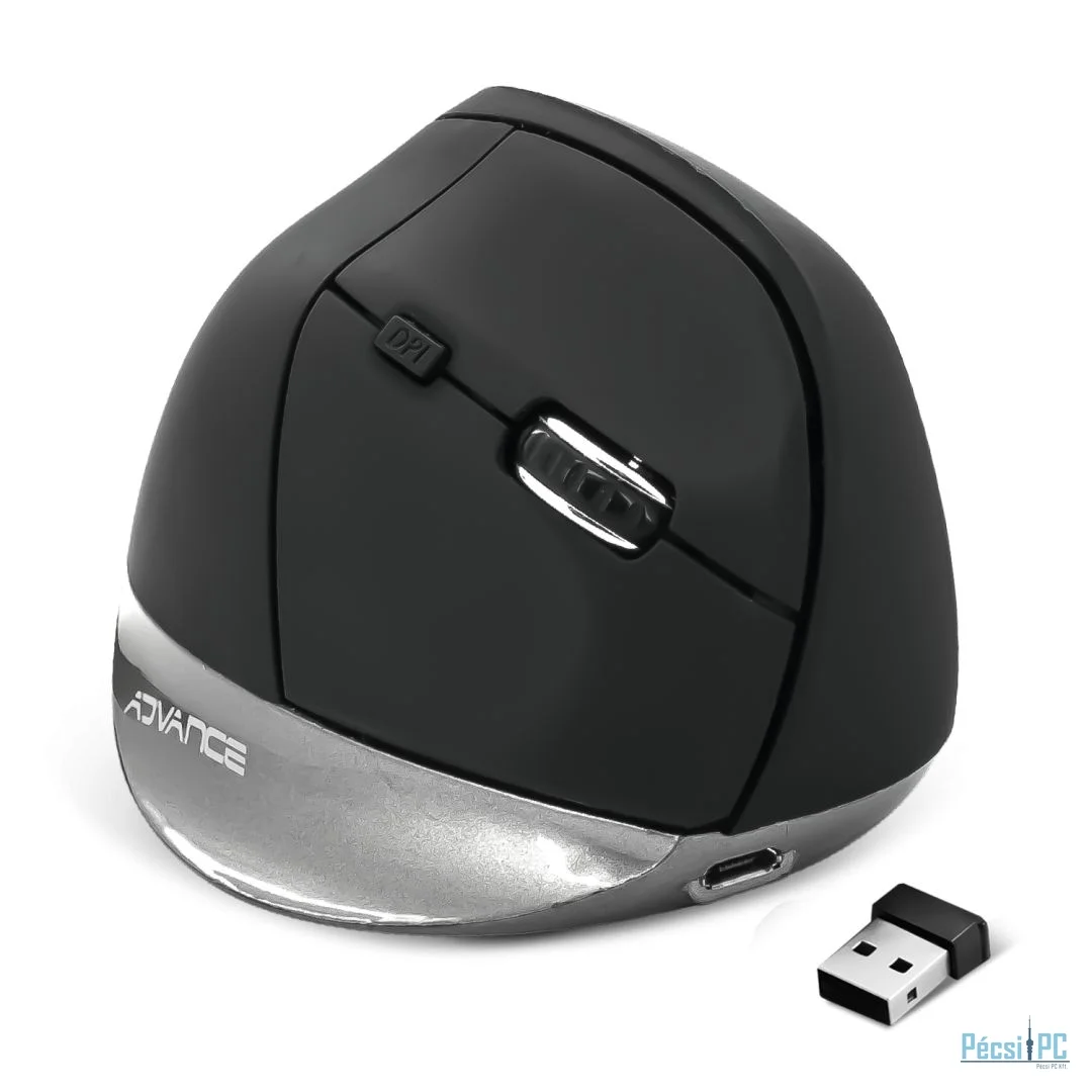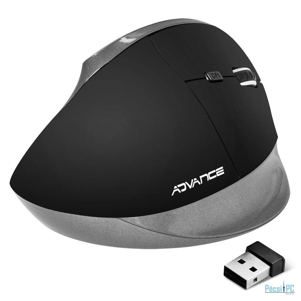 Vezeték nélküli, Wireless 2,4GHz, Optikai, 2400DPI, Black, Vertikális