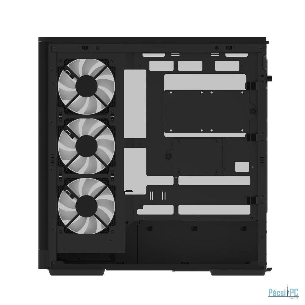 ATX, Black, 1x3,5", 3x2,5", 2xUSB3.2, 1xUSB Type-C, Audio, Táp nélkül, 480x460x235mm, Ventilátor:4x12cm, Tempered glass window, RGB, Gamer