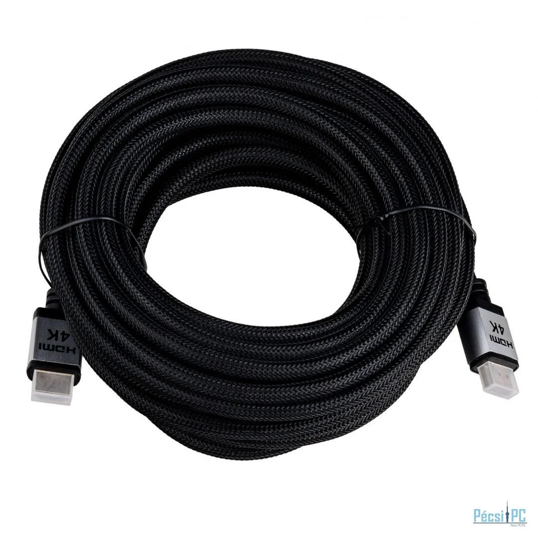 Videó kábel, HDMI, HDMI, High Speed HDMI with Ethernet, Ultra HD 4K, Male/Male, 10m, Black, Szövetborítás