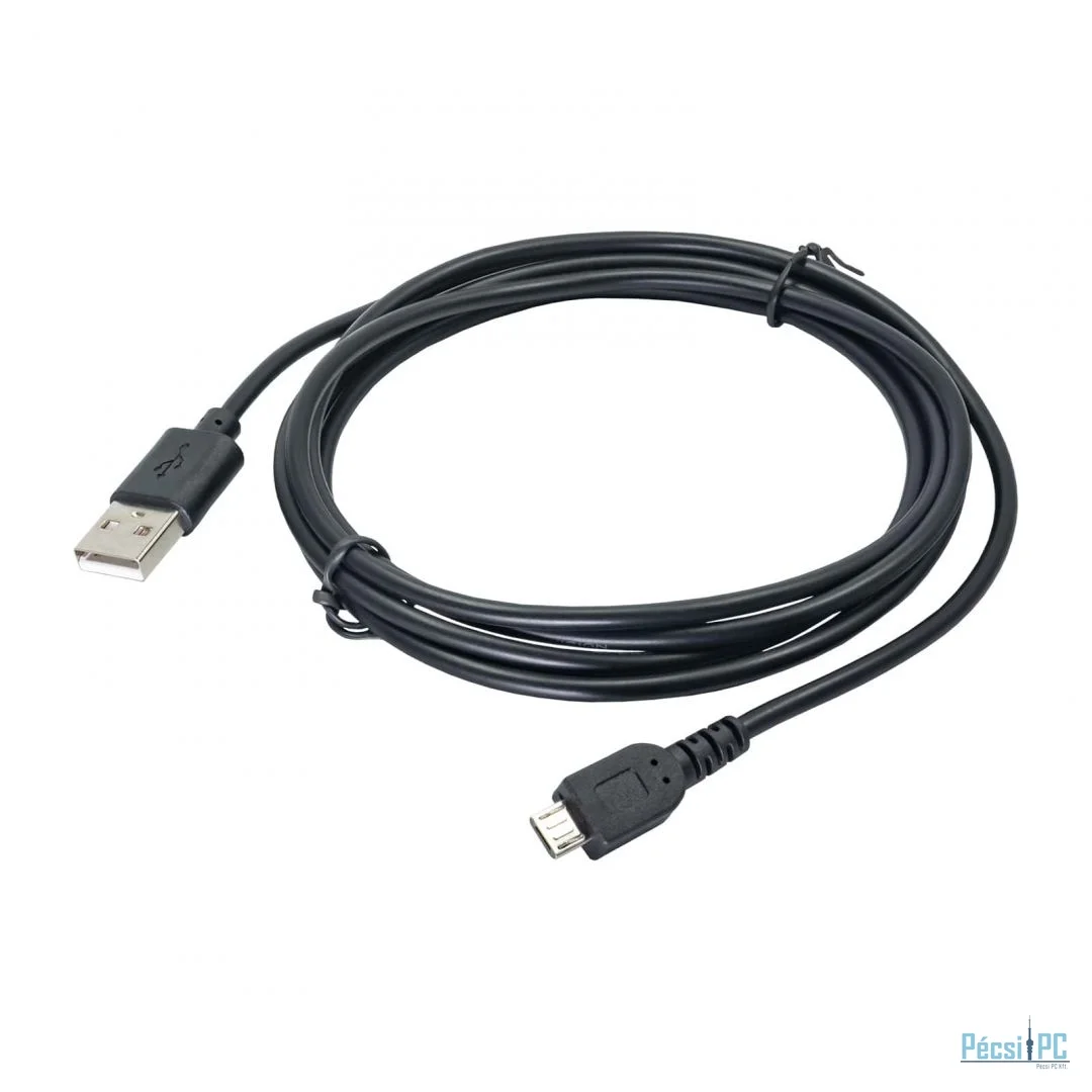 USB kábel, USB-A, microUSB, USB2.0, Male/Male, 1,8m, Black, Töltő és adatkábel