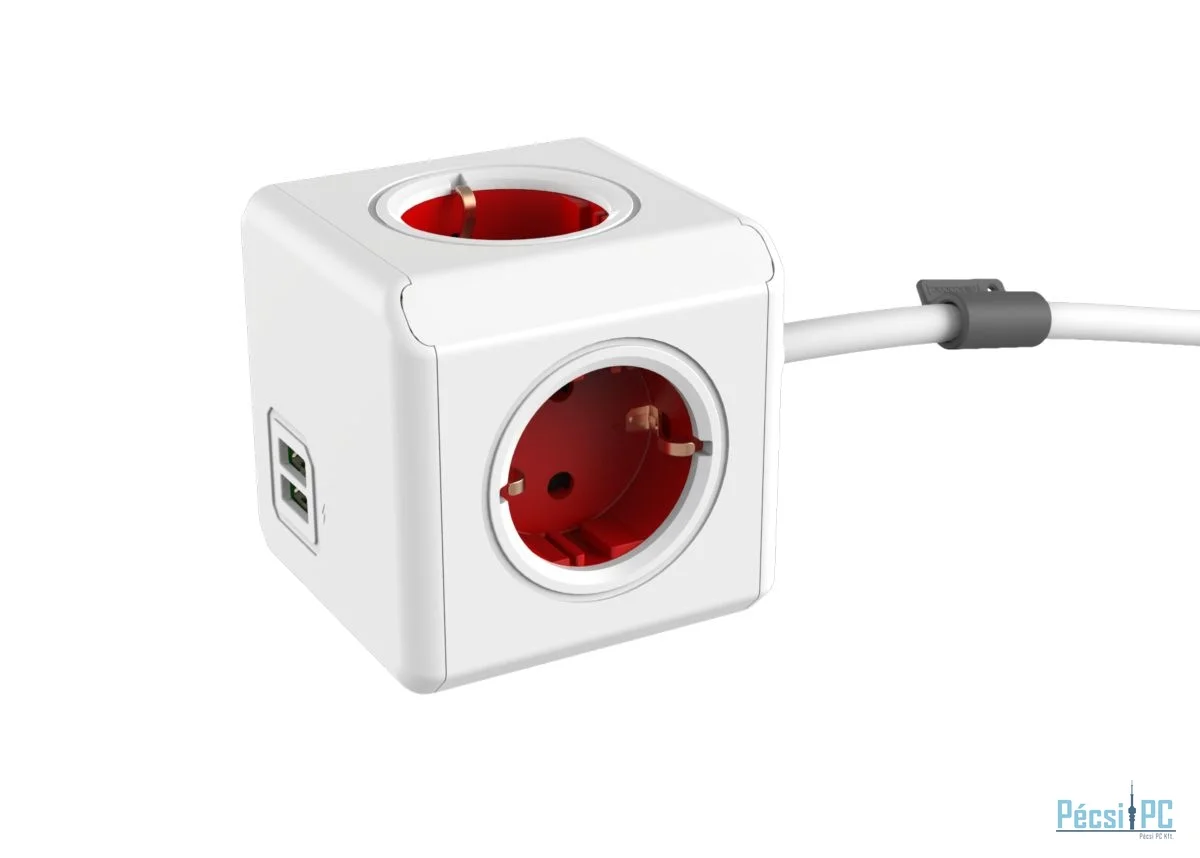 Allocacoc PowerCube Extended USB Hálózati Elosztó 4DIN 1,5m Boston Red