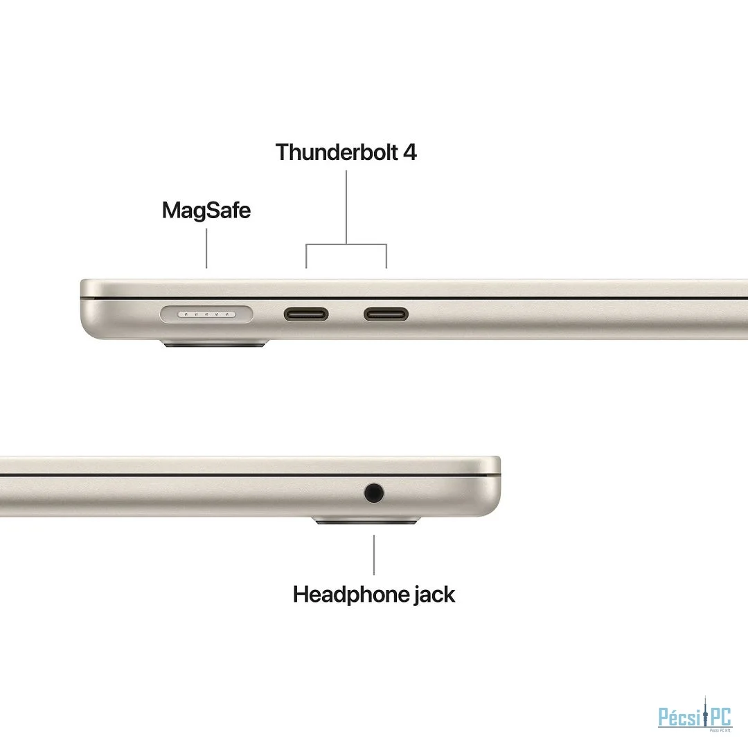 13,6", Apple M4, Apple M4 Chip, 16GB, Unified Memory, SSD 256GB, LED, 2560x1664, macOS, NO DVD!, AUDIO, Apple M4 Chip, WLAN, Bluetooth, 2xUSB Type-C, 1,24Kg, WEBCAM, SSD, Starlight, 18óra, Backlight
