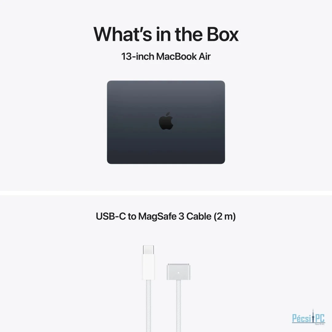 13,6", Apple M5, Apple M5 Chip, 24GB, Unified Memory, SSD 1024GB, LED, 2560x1664, macOS, NO DVD!, AUDIO, Apple M5 Chip, WLAN, Bluetooth, 2xUSB Type-C, 1,23Kg, WEBCAM, SSD, Midnight, 18óra, Backlight