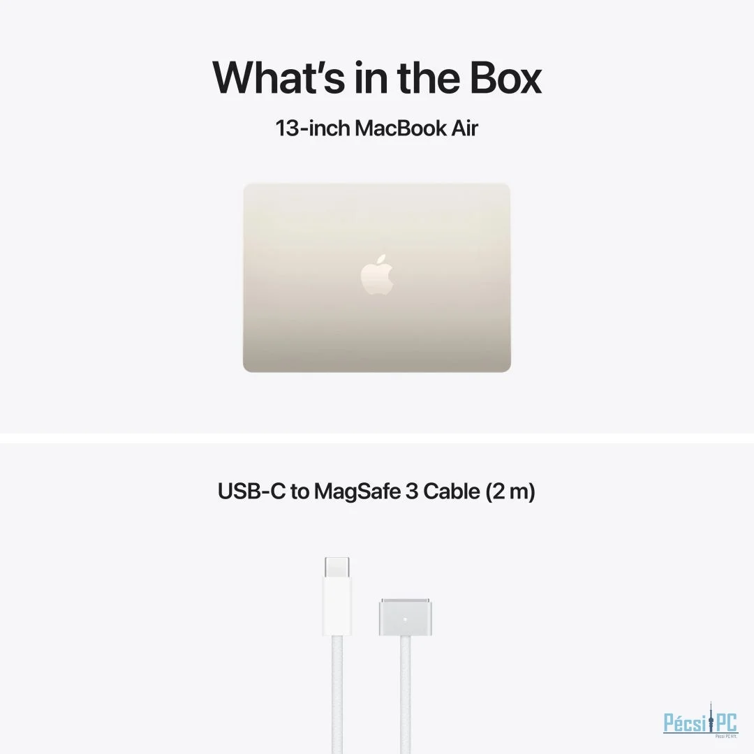 13,6", Apple M5, Apple M5 Chip, 16GB, Unified Memory, SSD 512GB, LED, 2560x1664, macOS, NO DVD!, AUDIO, Apple M5 Chip, WLAN, Bluetooth, 2xUSB Type-C, 1,23Kg, WEBCAM, SSD, Starlight, 18óra, Backlight