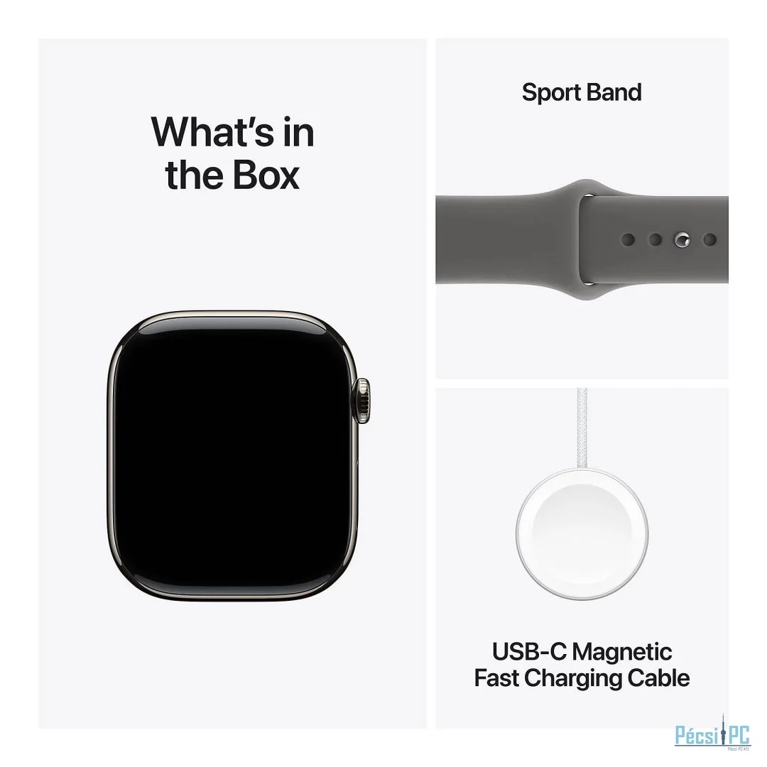 Kijelző mérete: 1,77", iOS, <2 nap, Vízálló, 5 ATM, Wi-Fi, Bluetooth, GPS, Gyroscope, NFC, Pulzusmérő, Gyorsulásmérő, Üzenet és hívás kezelése, Mikrofon, Alvás figyelés, Magasságmérő, Elégetett kalória kijelzés, Zene vezérlése, Tok mérete: 42x36x9,7mm