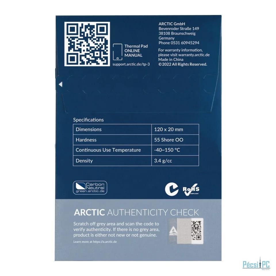 Arctic TP-3 120x20x1mm Hővezető lap (4lap/csomag)
