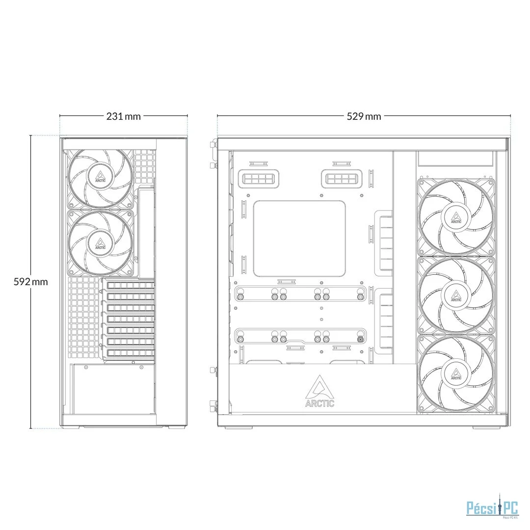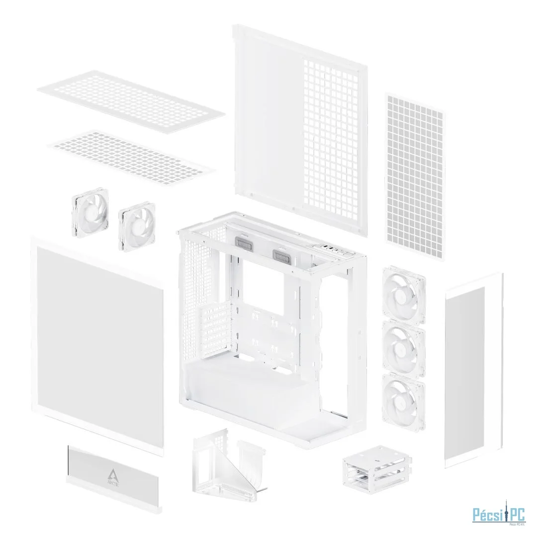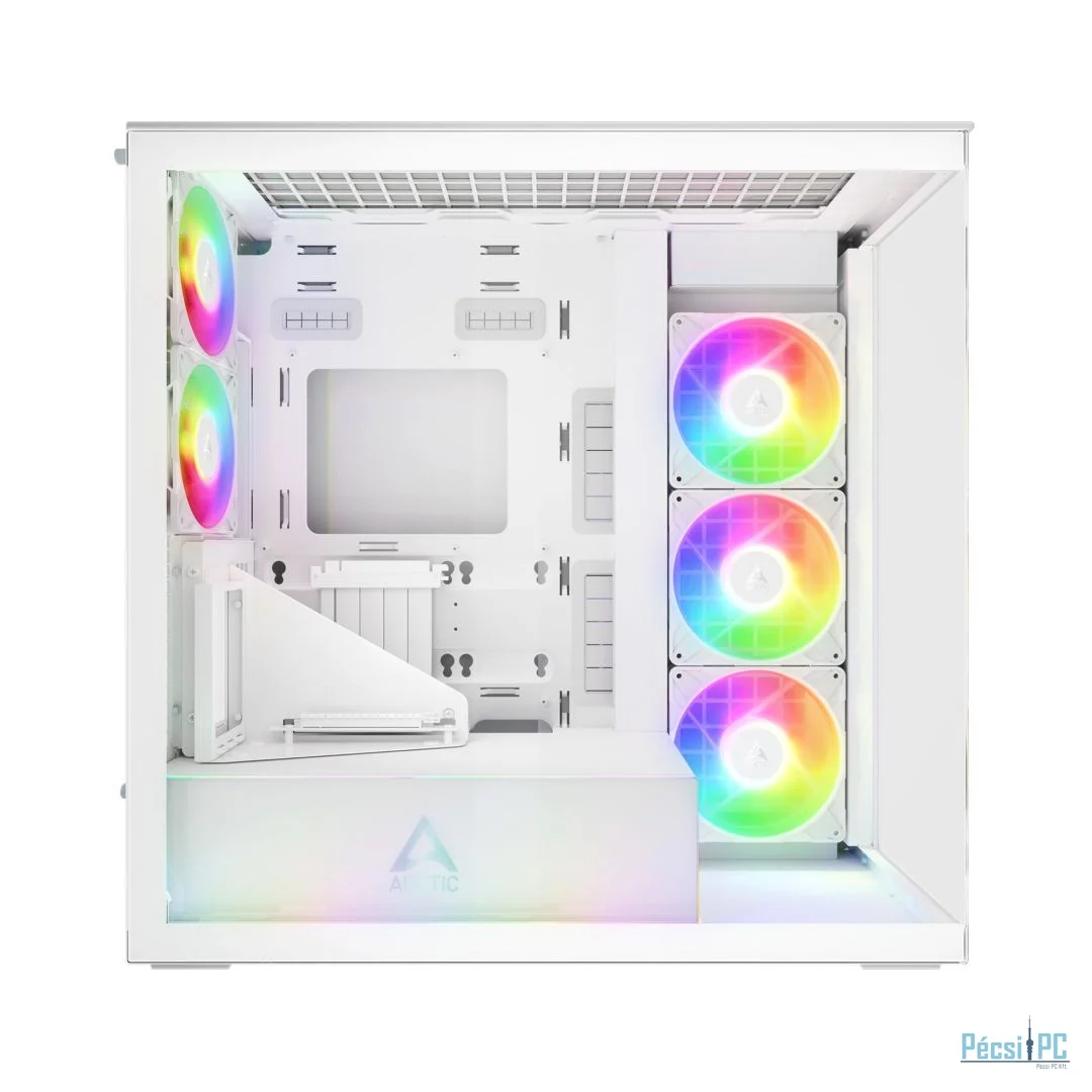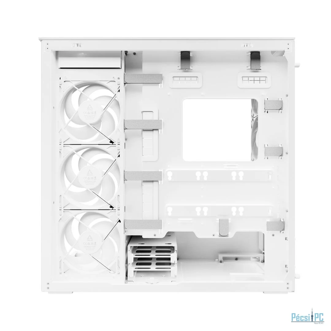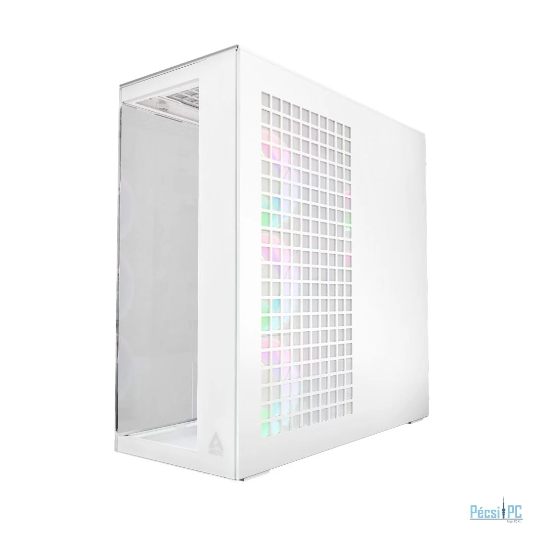 E-ATX, White, 2x3,5", 3x2,5", 2xUSB3.2, 1xUSB Type-C, Audio, Táp nélkül, 529x529x231mm, Ventilátor:3x14cm, Tempered glass window, RGB, Gamer