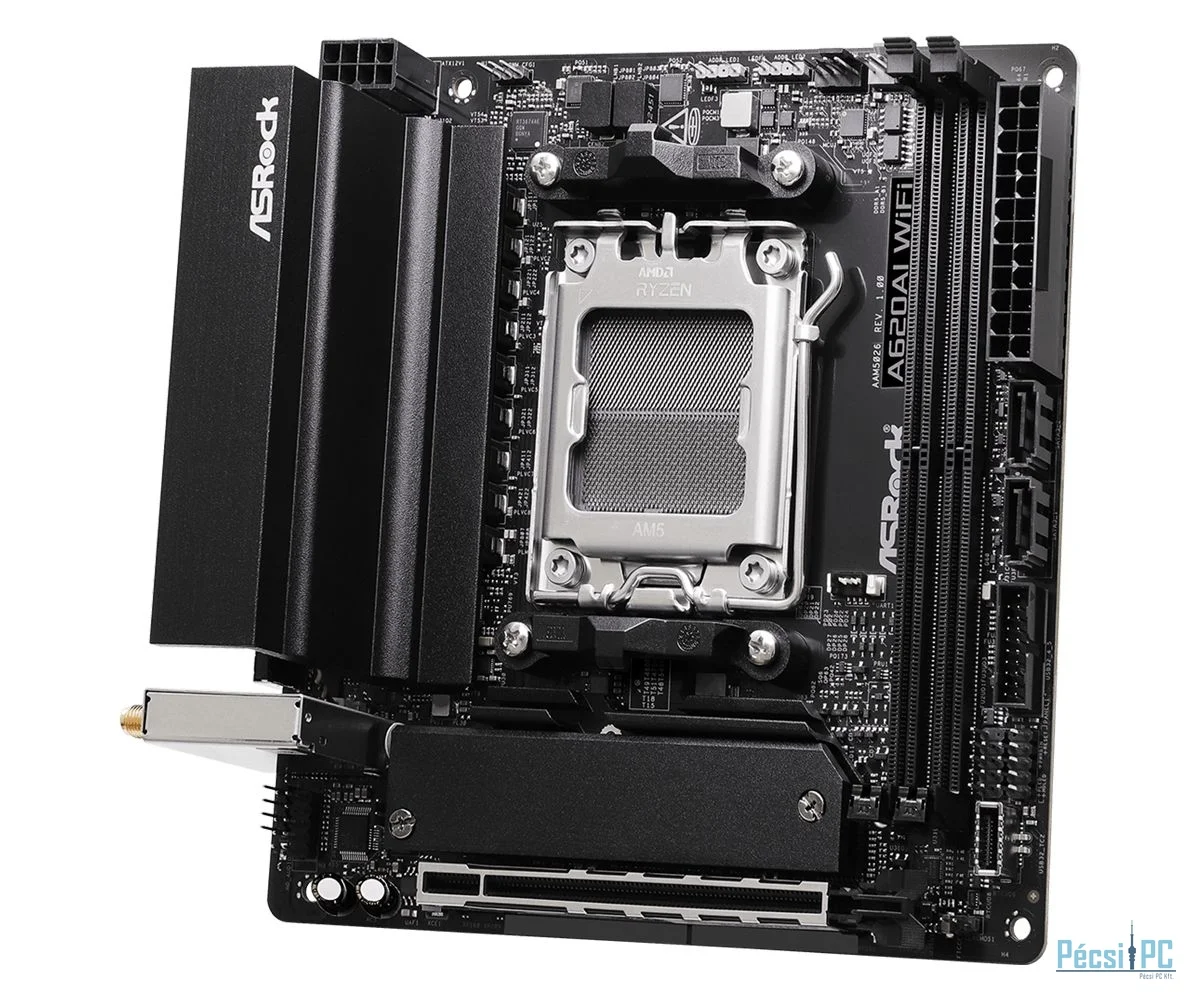 AM5, AMD A620A, 2xDDR5, Max:5600MHz, Max:128GB, 1xPCIE16, 2xSATA3, RAID, 2xUSB, 3xUSB3.2, 1xUSB3.2C, HDMI, 7.1, 2.5Gb/s LAN, Gigabit, WiFi, Bluetooth, 1xHyper M.2, Mini-ITX