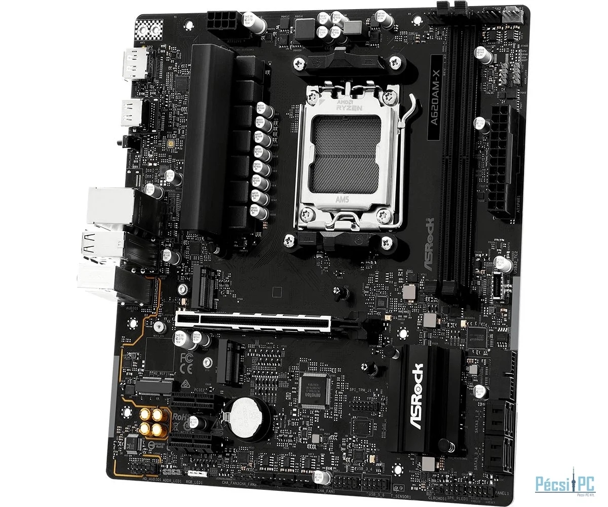 AM5, AMD A620A, 2xDDR5, Max:5600MHz, Max:128GB, 1xPCIE16, 2xPCIE1, 4xSATA3, RAID, 2xUSB, 3xUSB3.2, 1xUSB3.2C, HDMI, DisplayPort, 7.1, 2.5Gb/s LAN, 2xHyper M.2, Micro-ATX